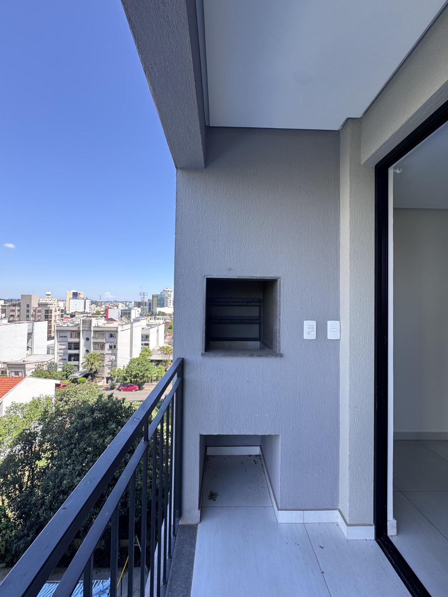 A sacada com churrasqueira é um convite para momentos de lazer e convivência, com o bônus do sol da manhã, garantindo iluminação natural e mais conforto térmico ao longo do dia.