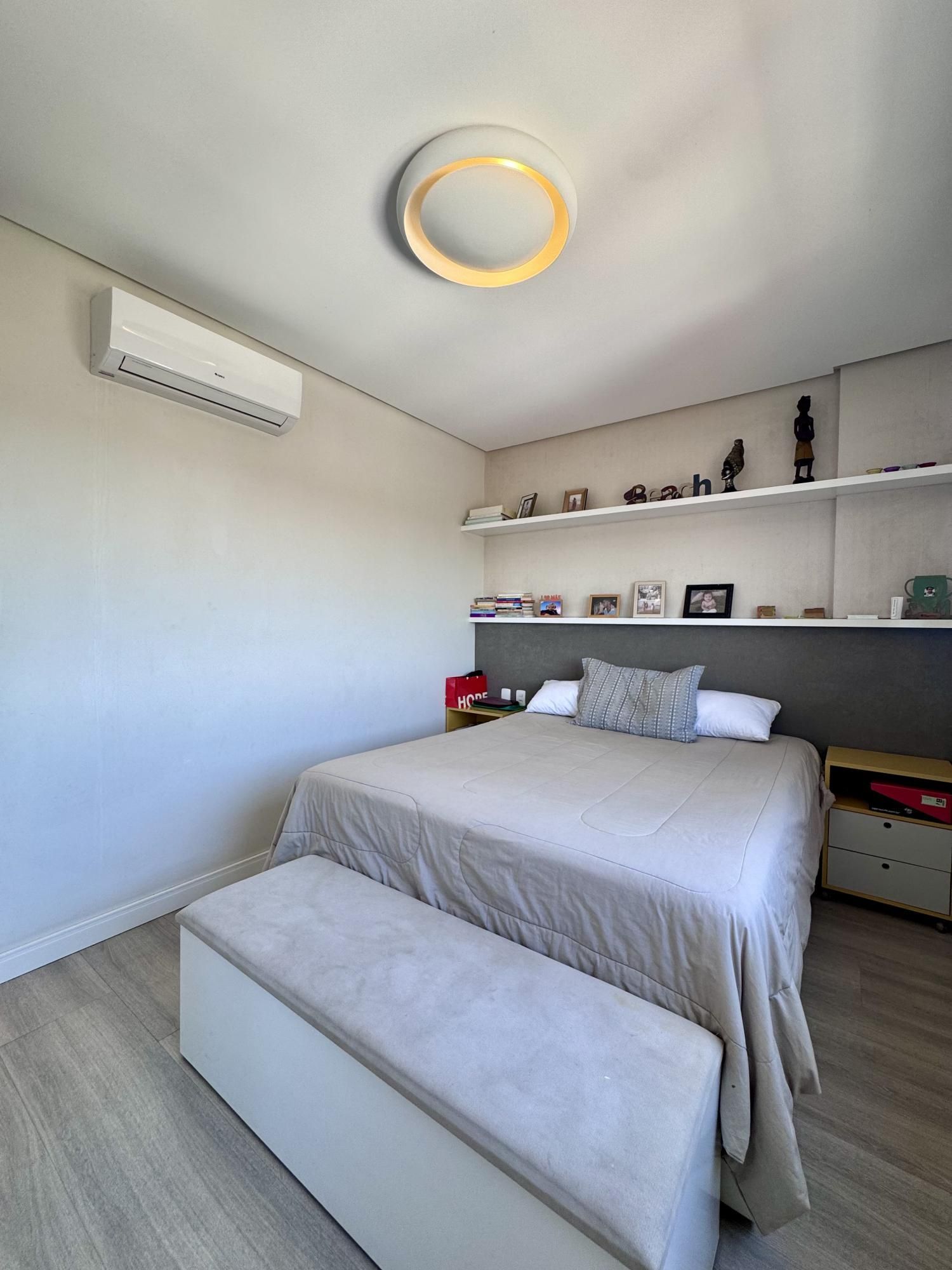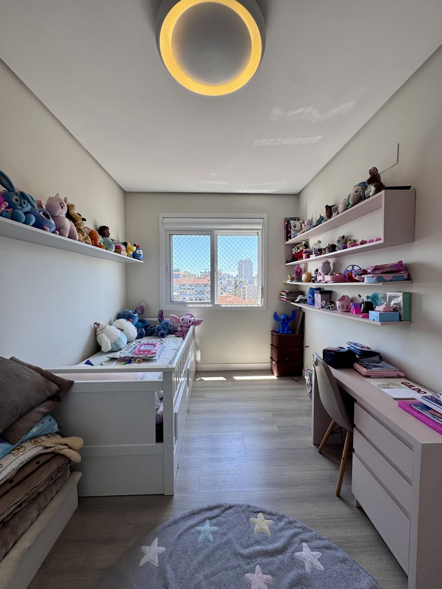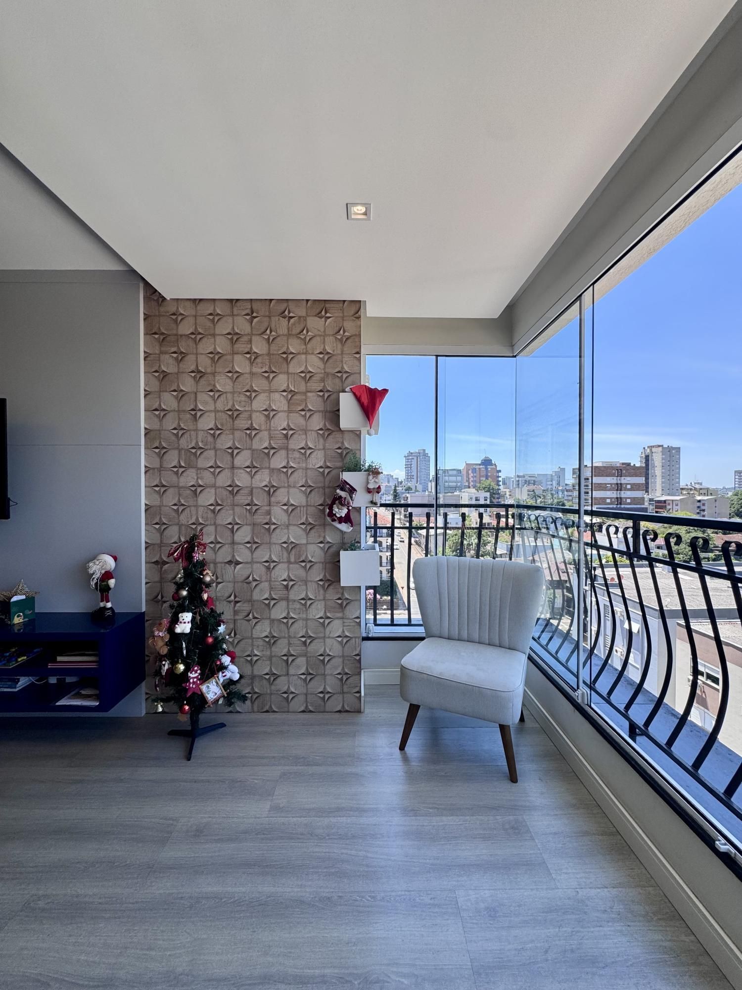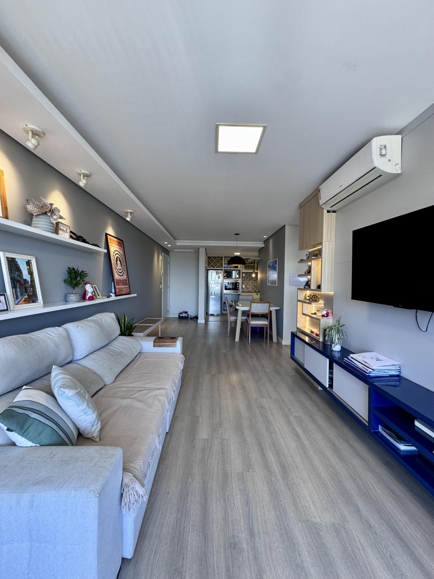 Apartamento 02 dormitórios, sendo uma suíte, alto padrão de acabamento, Móveis sob medida, churrasqueira, piso porcelanato e laminado, box duplo de estacionamento; prédio com elevador, hall de entrada, salão de festas e playground.