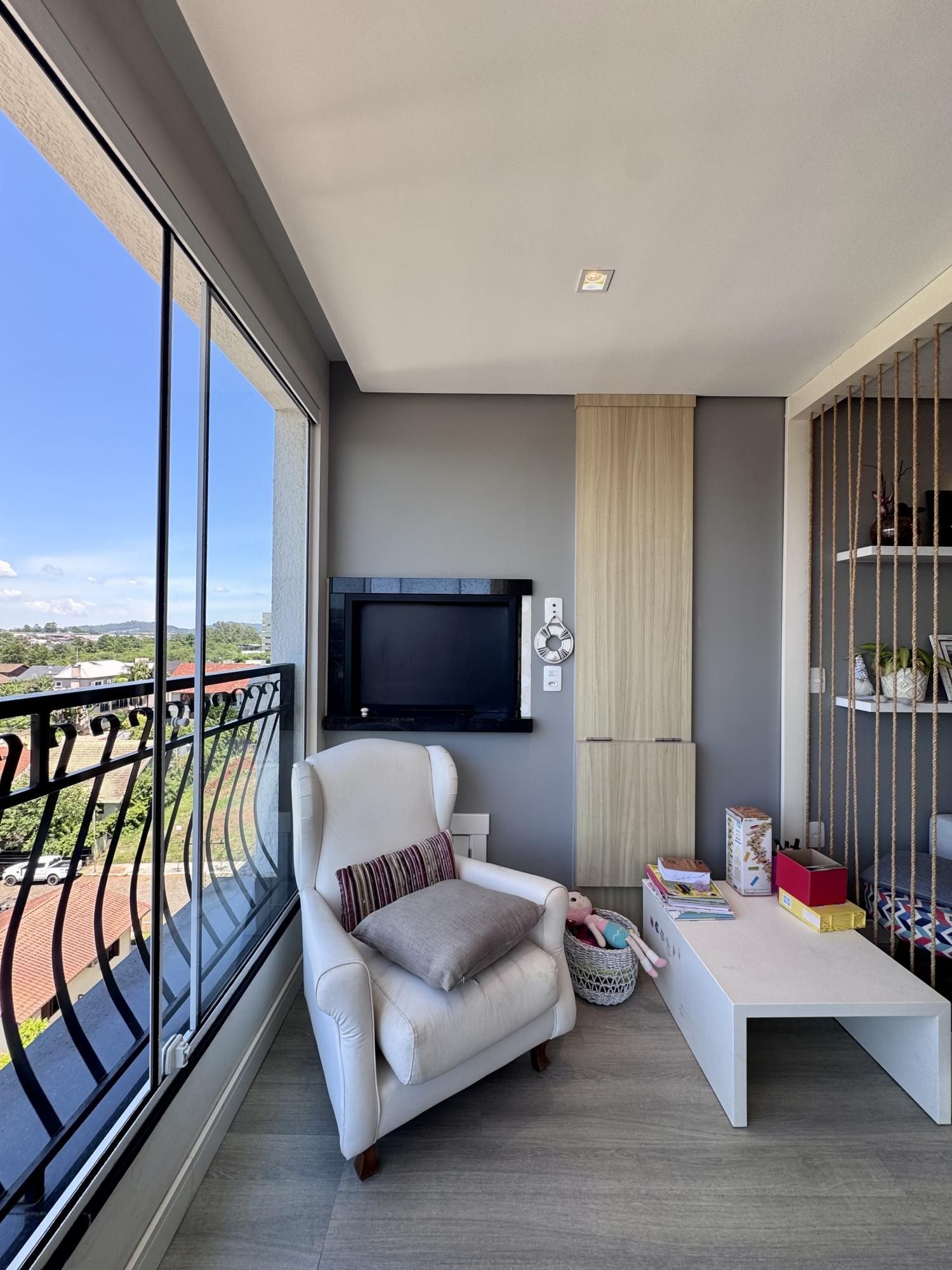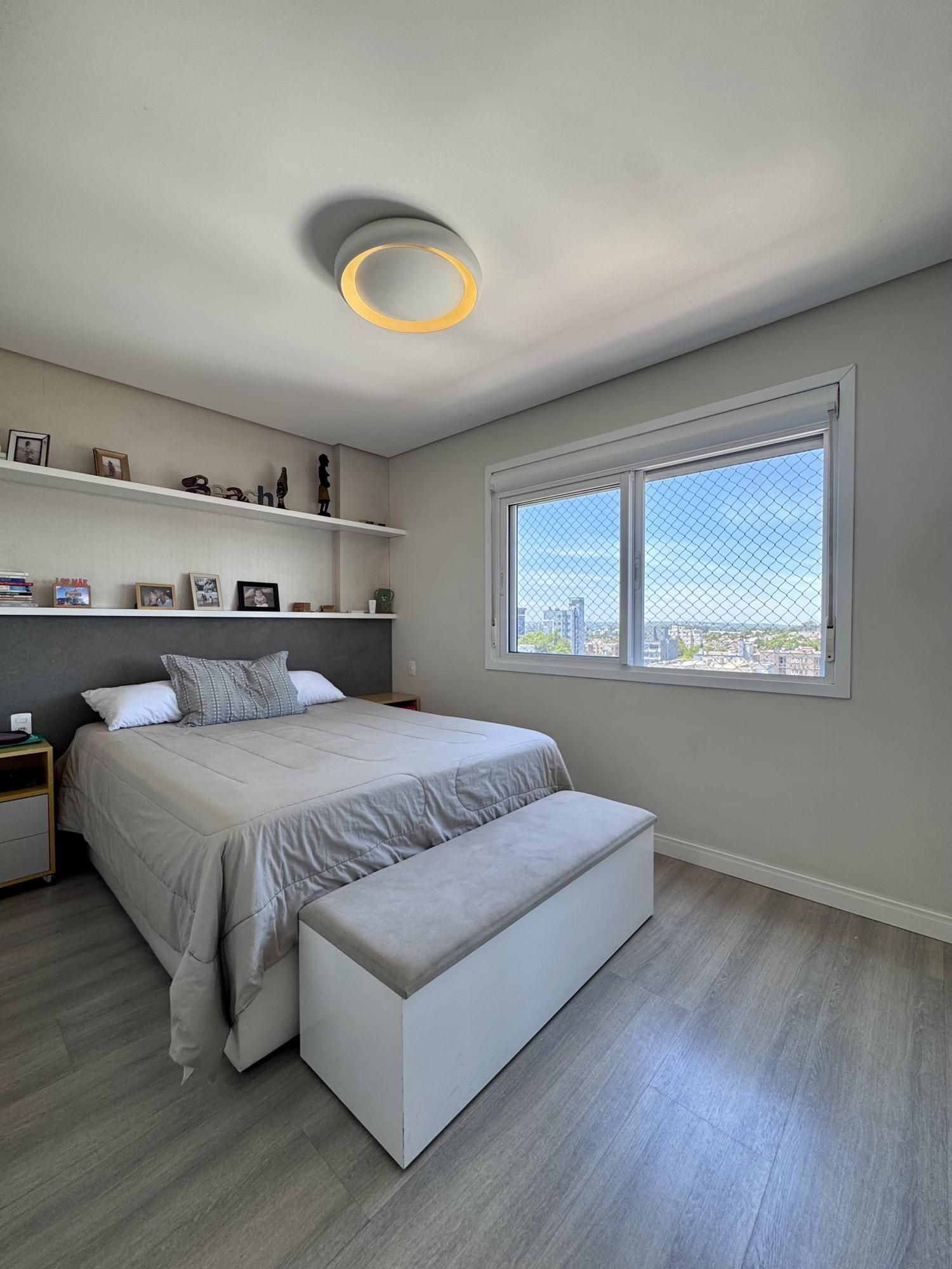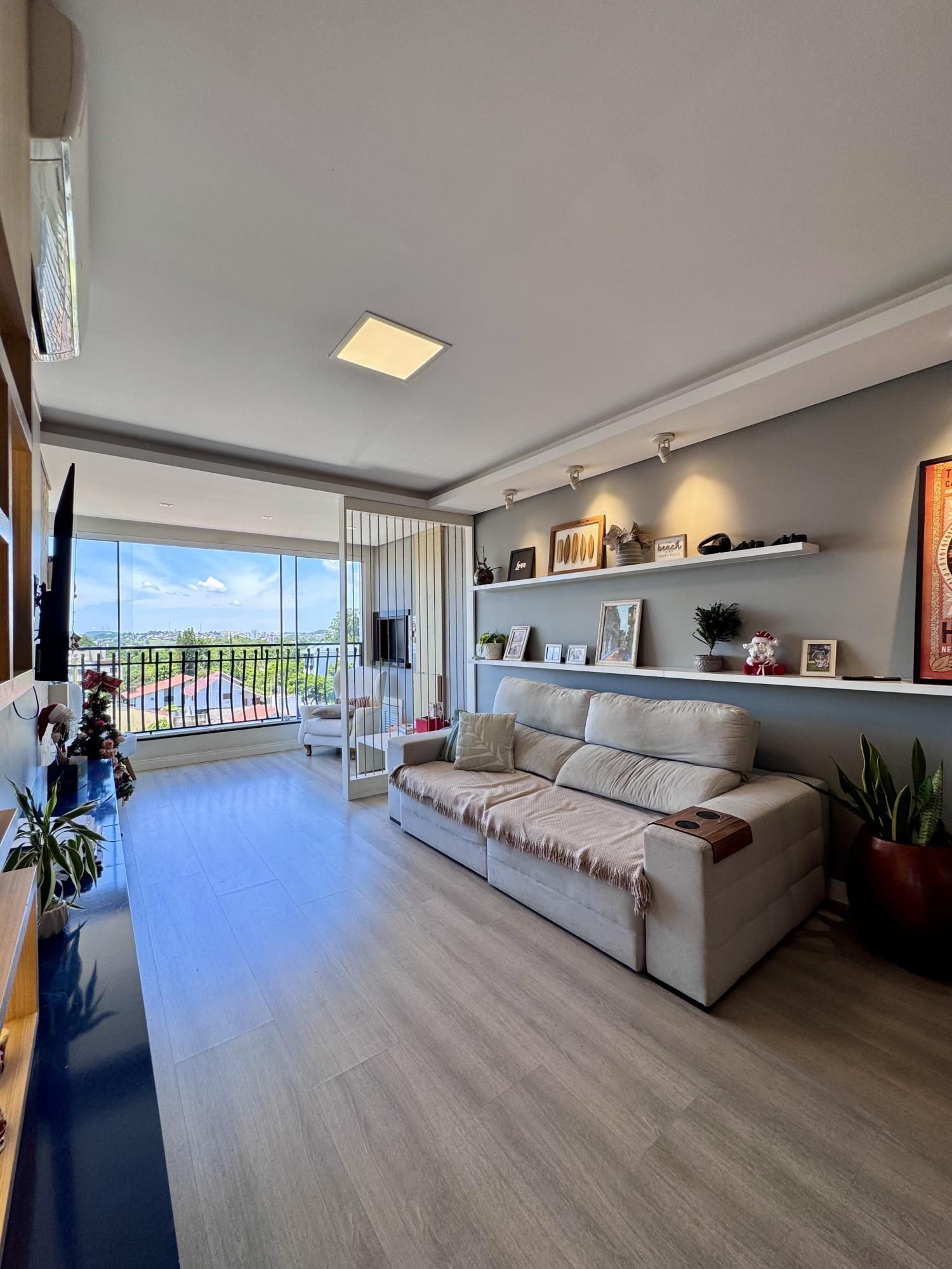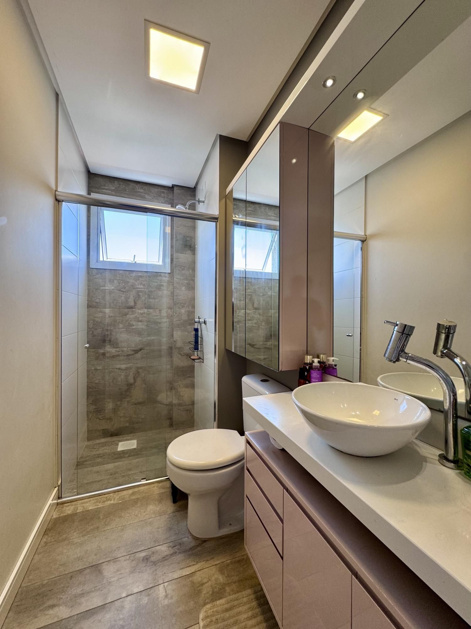 Apartamento 02 dormitórios, sendo uma suíte, alto padrão de acabamento, Móveis sob medida, churrasqueira, piso porcelanato e laminado, box duplo de estacionamento; prédio com elevador, hall de entrada, salão de festas e playground.