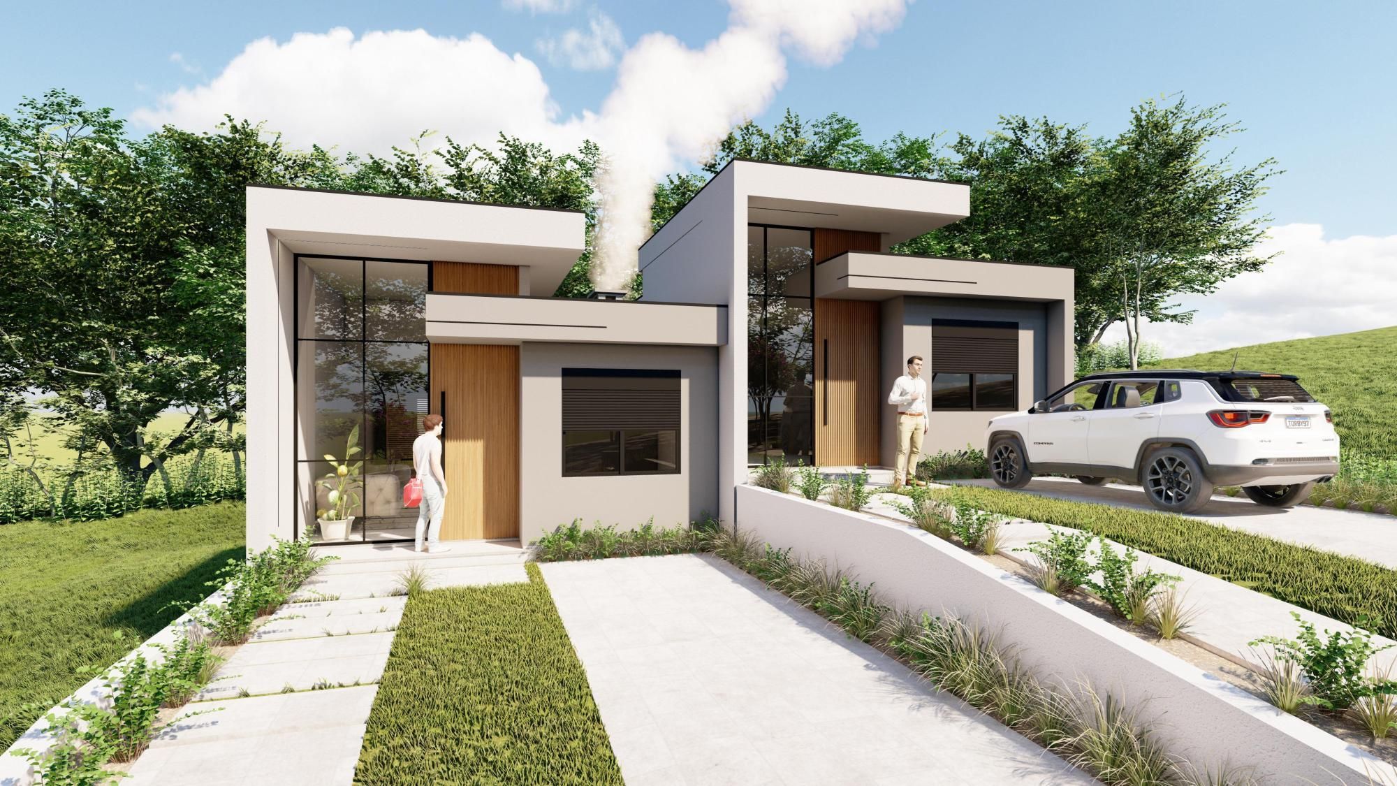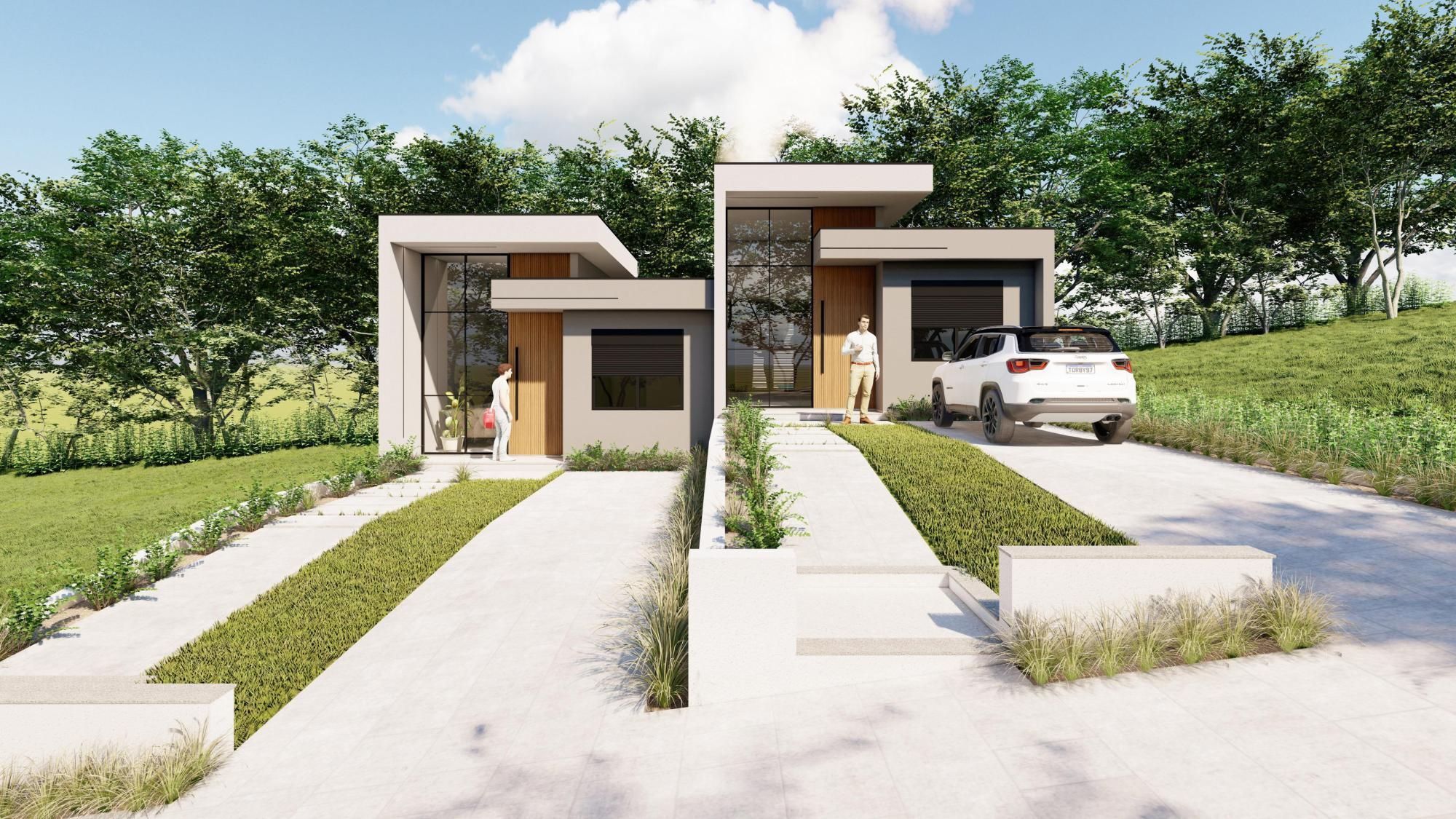 - Acesso de veículos e pedestres: trilhos de concreto na rampa de entrada e pisantes