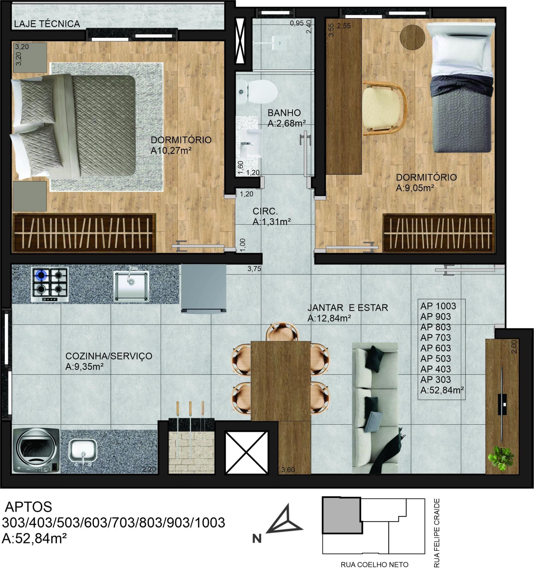 52.84m² área privativa