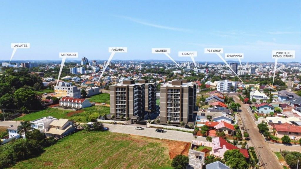 Ótimo apartamento de 02 dormitórios no bairro Universitário! Amplo living integrado, sala de estar e jantar, sacada, churrasqueira, Box de estacionamento. Vista para a cidade, andar alto.