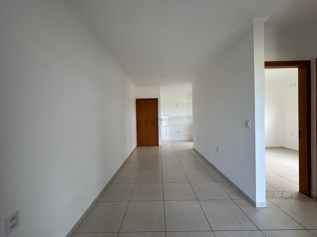 Apartamento 2 dormitórios, sacada aberta, de frente, sala e cozinha integradas, área de serviço. Box de estacionamento para carro. Prédio sem elevador.