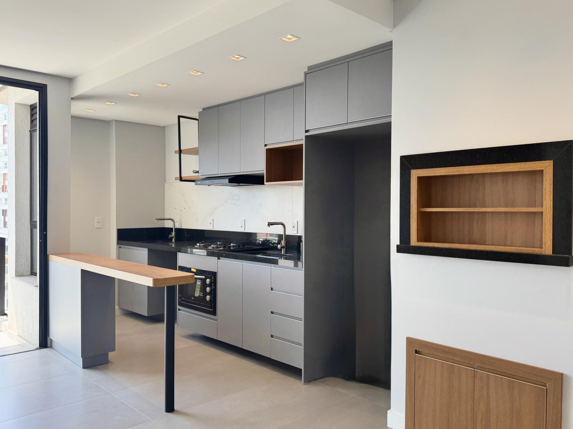 Apartamento 02 dormitórios, sendo uma suíte, excelente localização, sacada ampla, churrasqueira, Box de estacionamento. Prédio com elevador, salão de festas, piscina e academia!