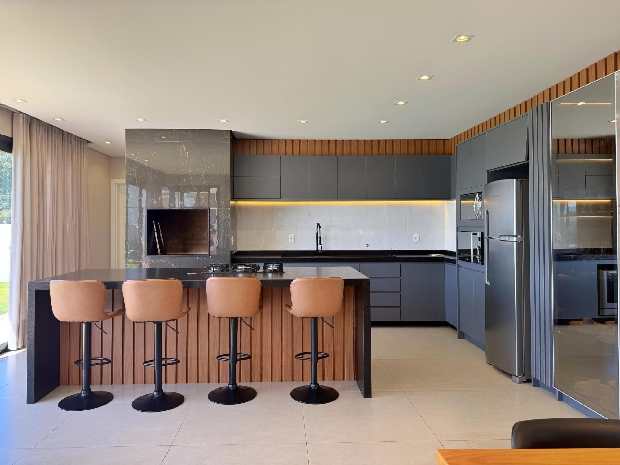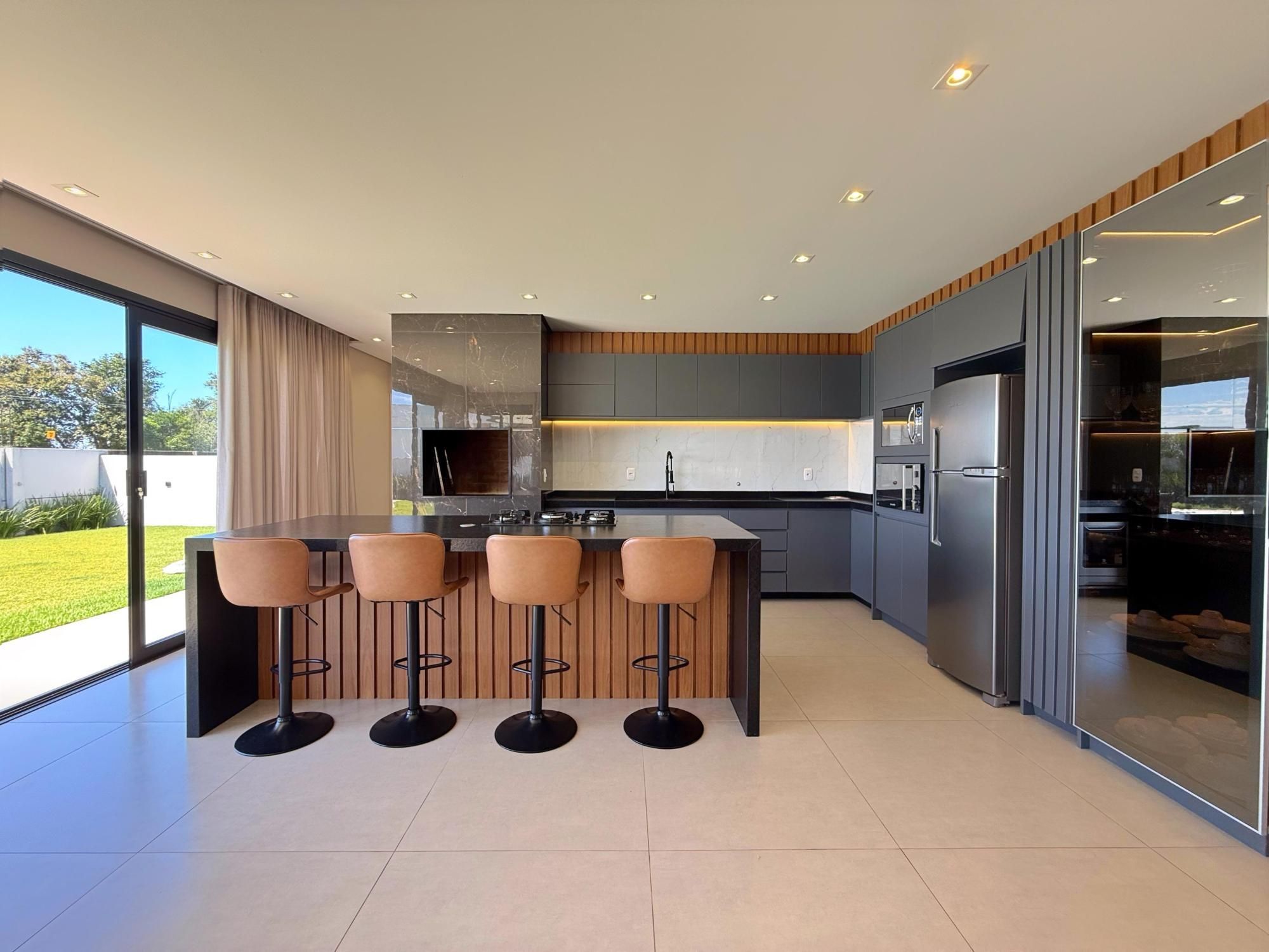 Garagem para 2 carros. Ficam móveis sob medida e eletrodomésticos.