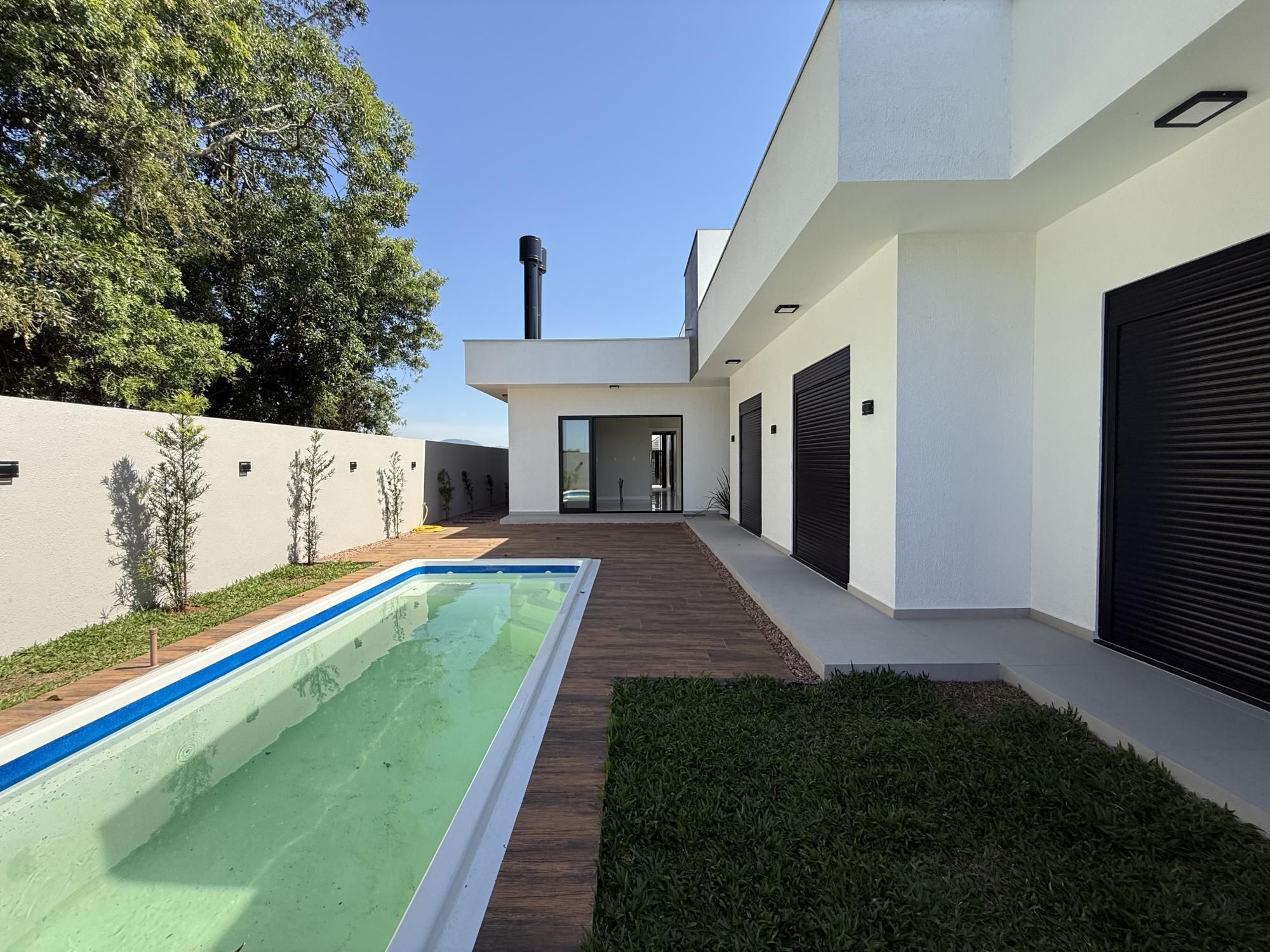 Será entregue com piscina, cascata e led.