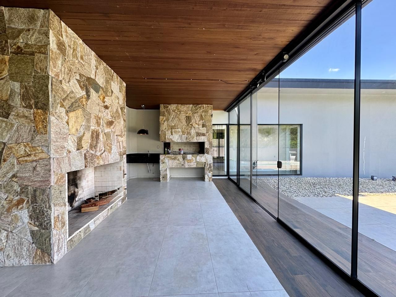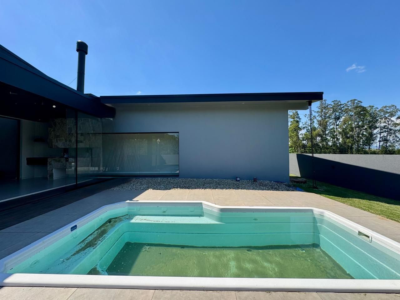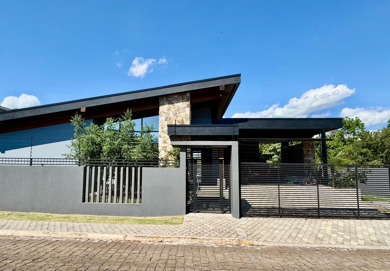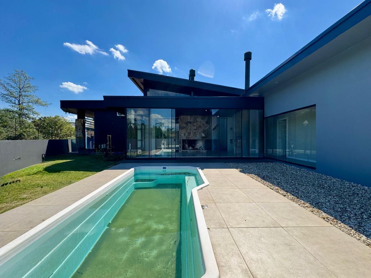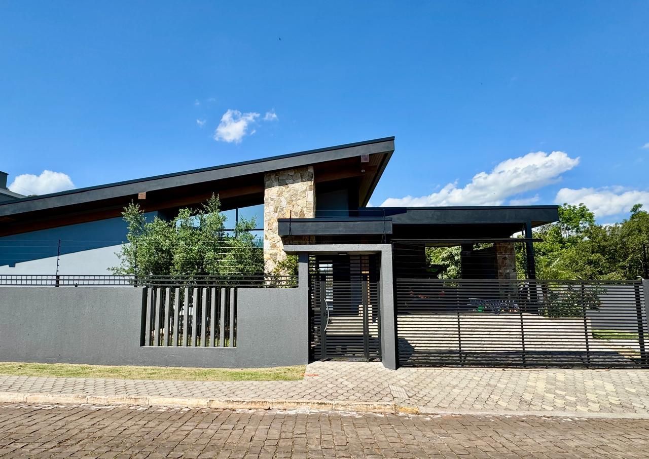 Casa plana, localizada no Bairro Universitário. 3 suítes, sendo 1 master Lavabo 2 vagas de garagem Espaço gourmet com churrasqueira Lareira integrada ao estar social Pátio com piscina. Placas solares fotovoltaicas Cercada, murada, portão eletrônico.