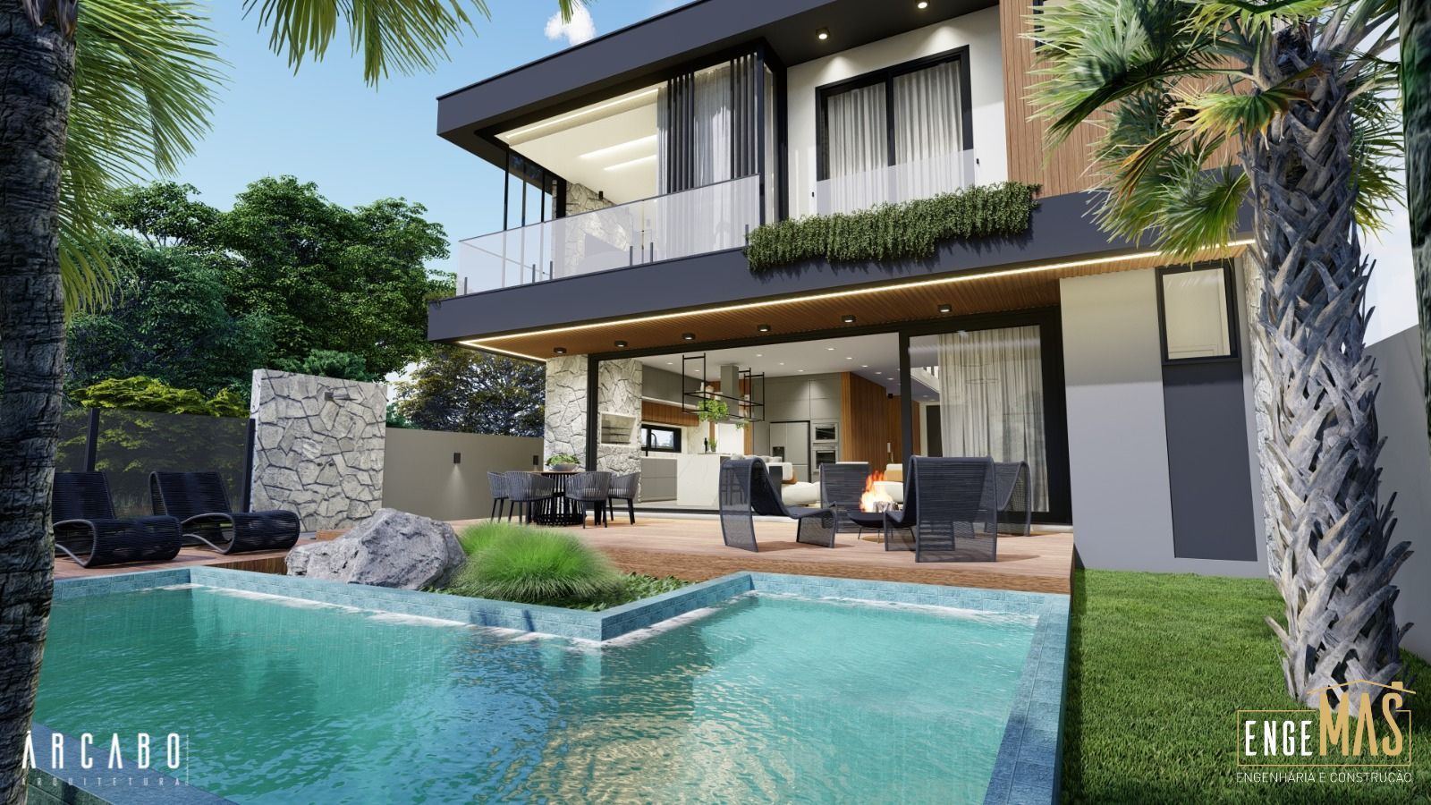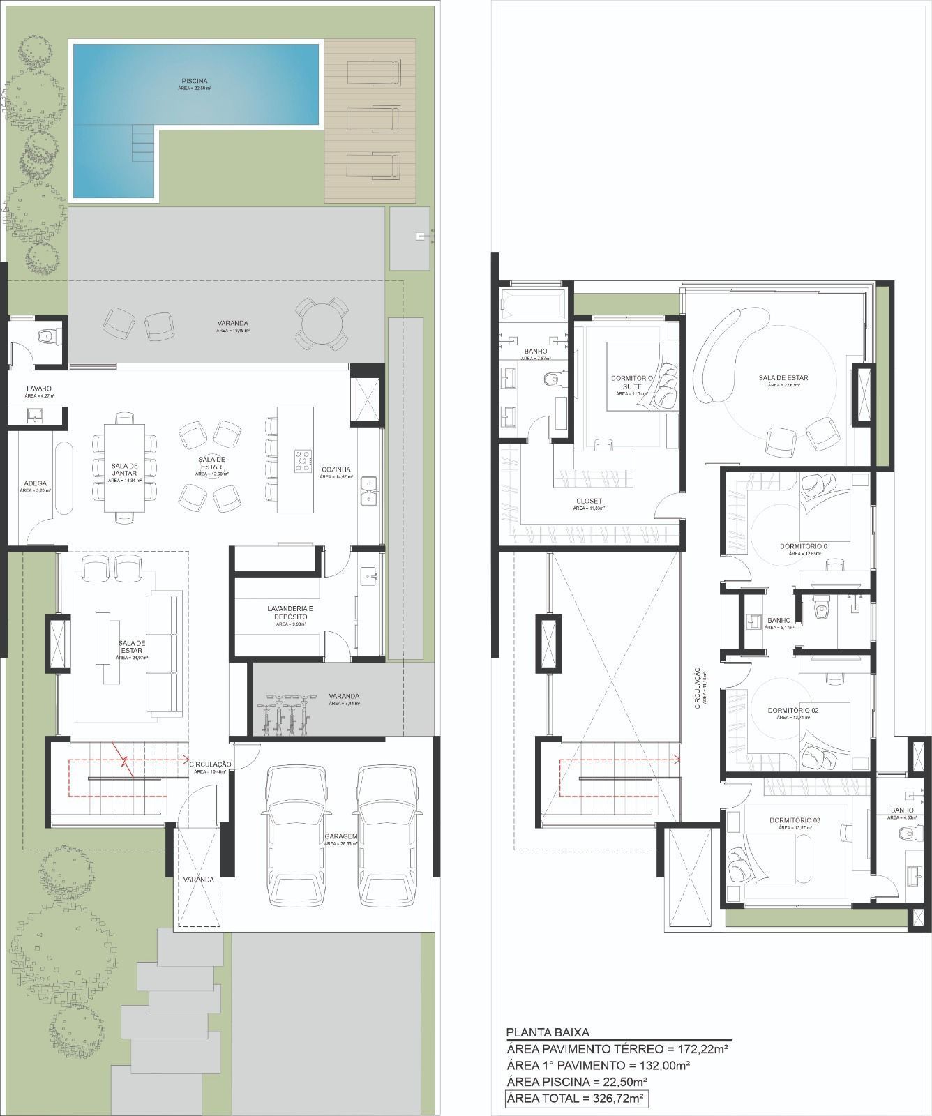 Área privativa: 303,80 m², Área piscina (construída): 22,50 m² e Área terreno: 365,43 m².