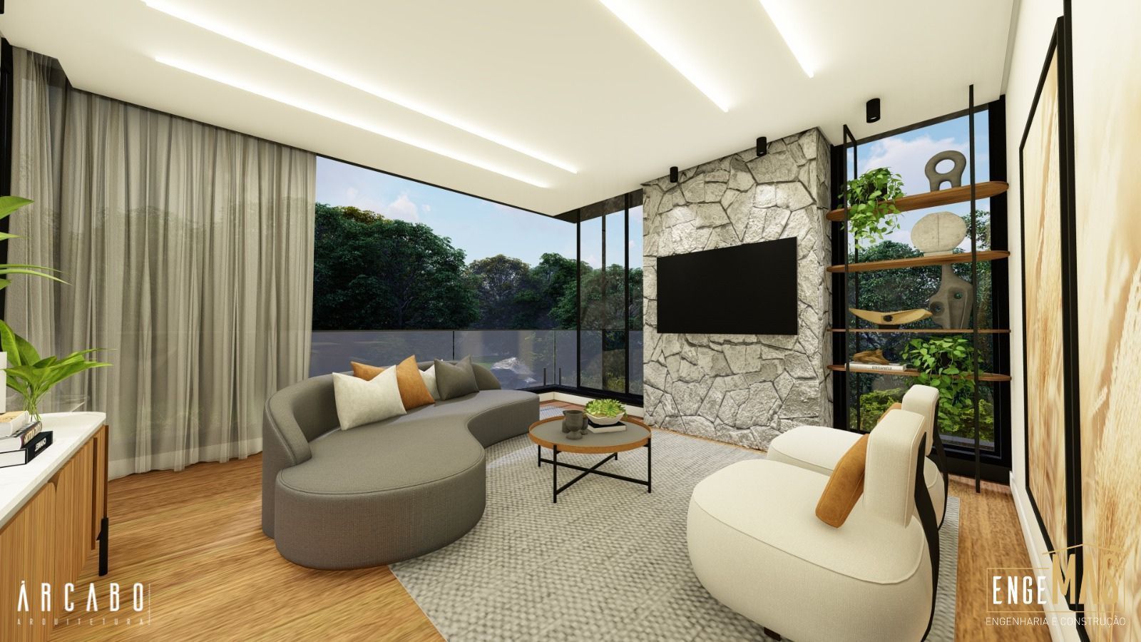 - Forro interno em gesso, forro externo em ripado amadeirado;