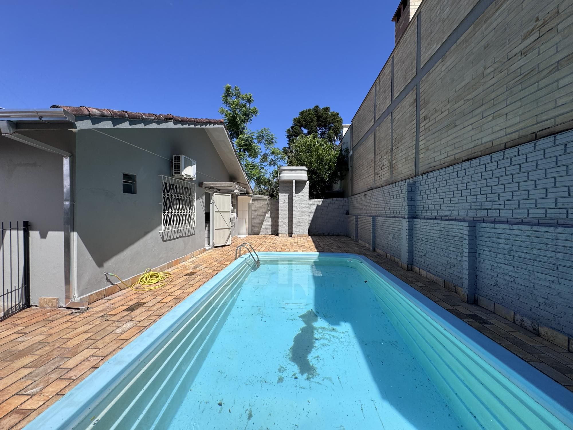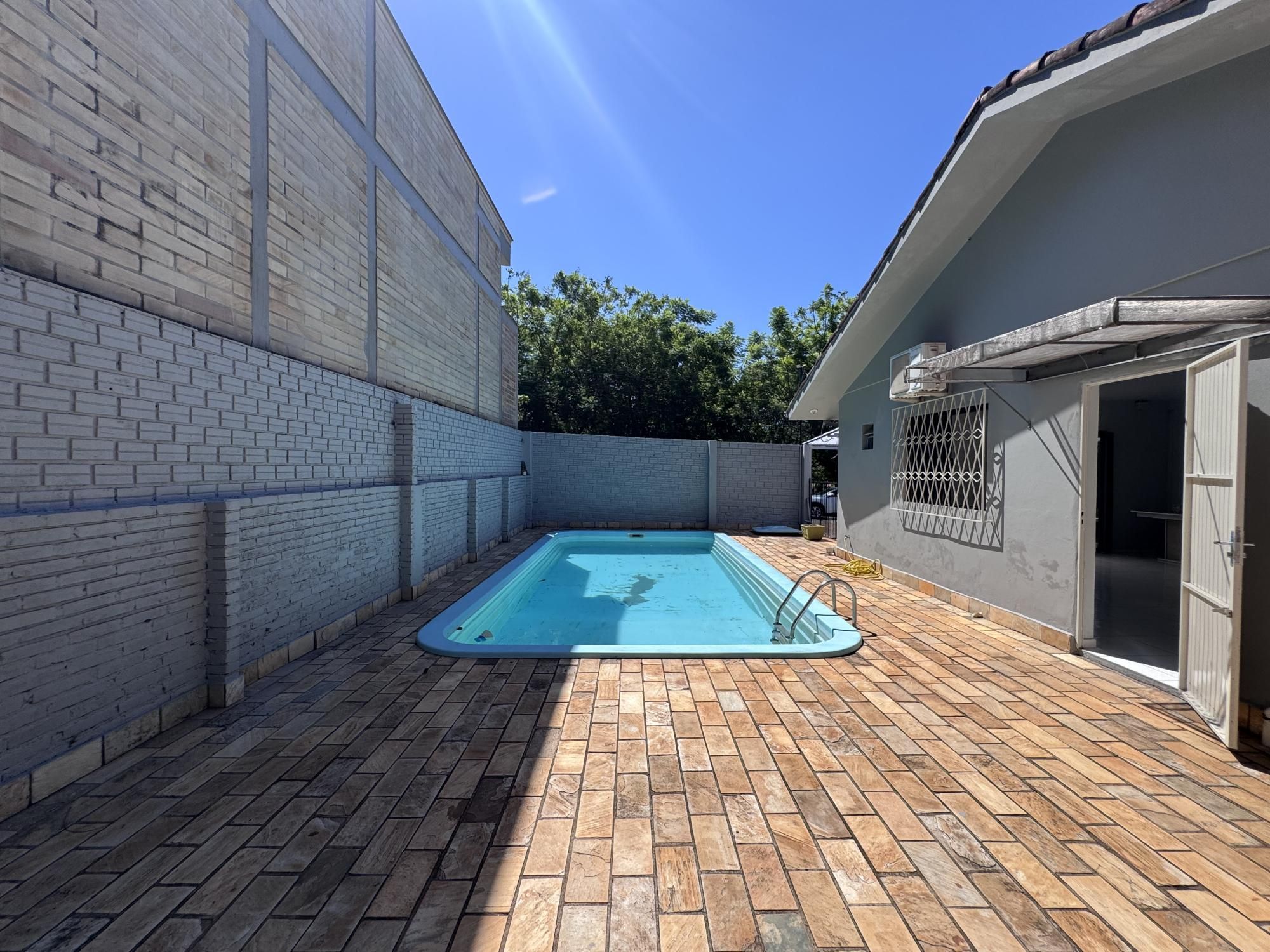 Casa residencial e comercial, em terreno de esquina, medindo 450m, casa ampla, plana, sendo 04 dormitórios + dependência de empregada, 04 banheiros, lavanderia separada, pátio com piscina, depósito, cercada, murada, garagem para 02 carros.