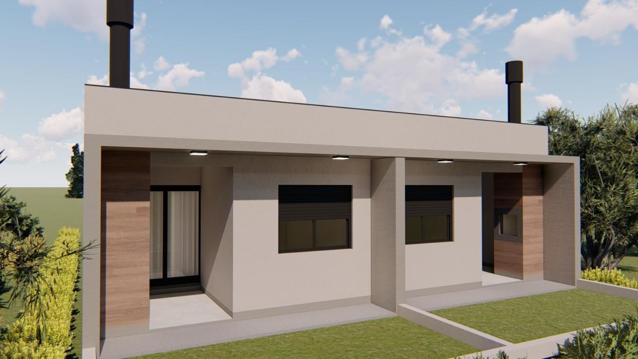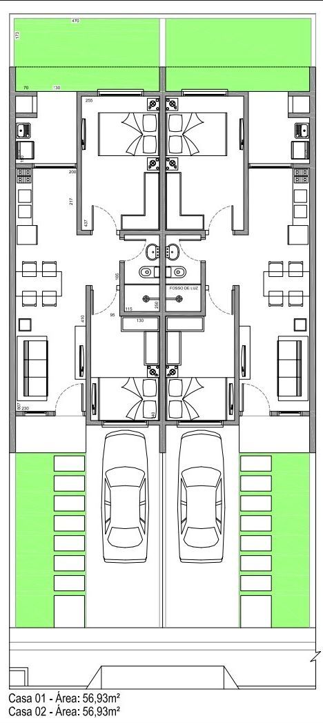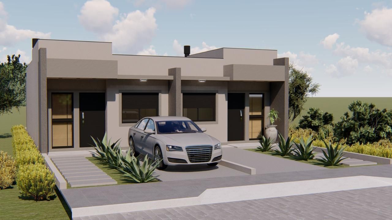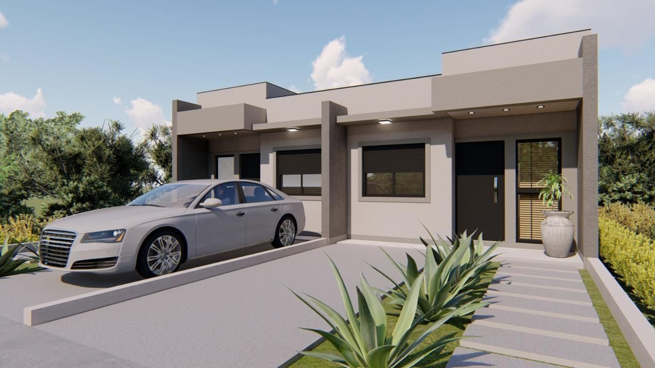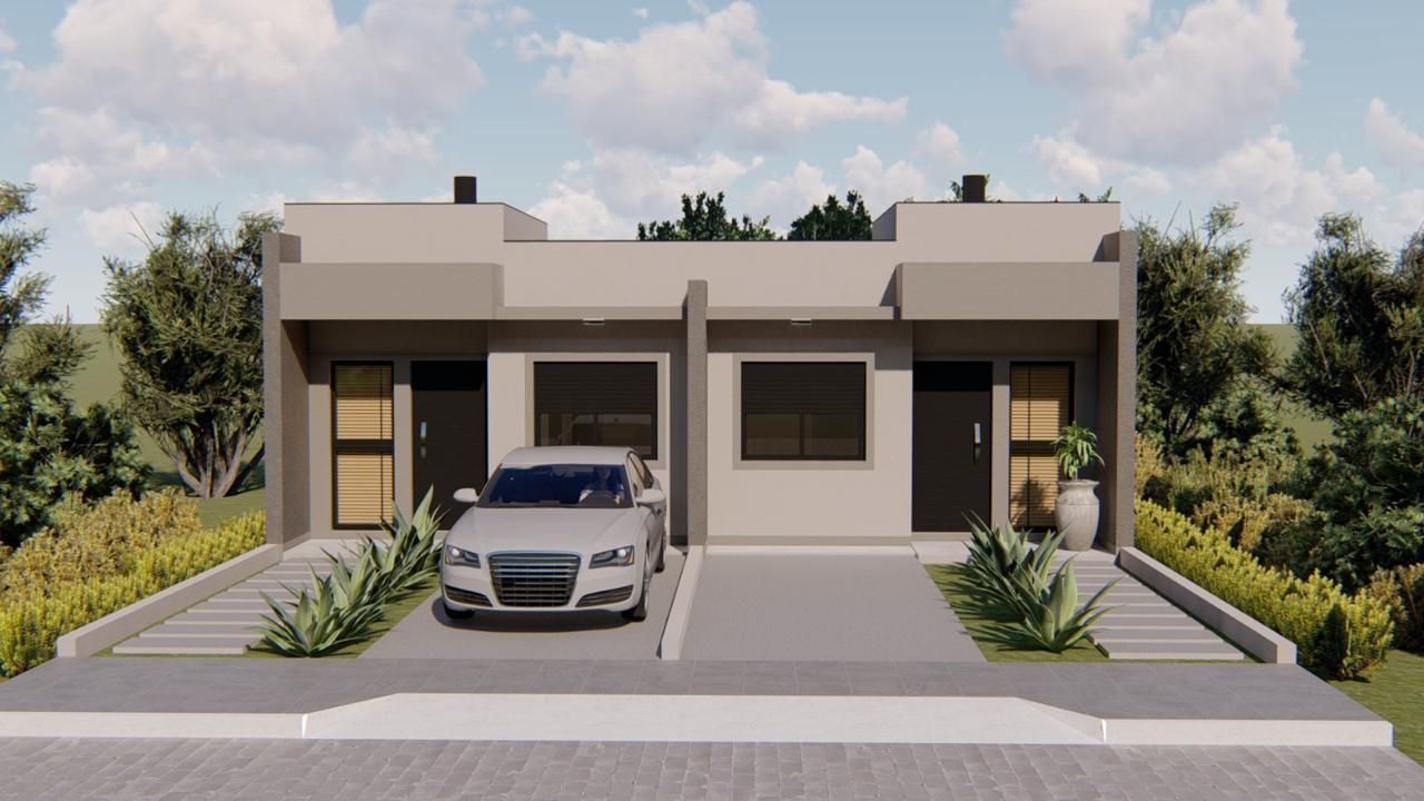 CASA GEMINADA, 2 dormitórios, 56,93 m² privativos cada. Aberturas externas alumínio preto, porcelanato, pé direito alto. Unidade disponível: 01 Entrega prevista: março/2026.