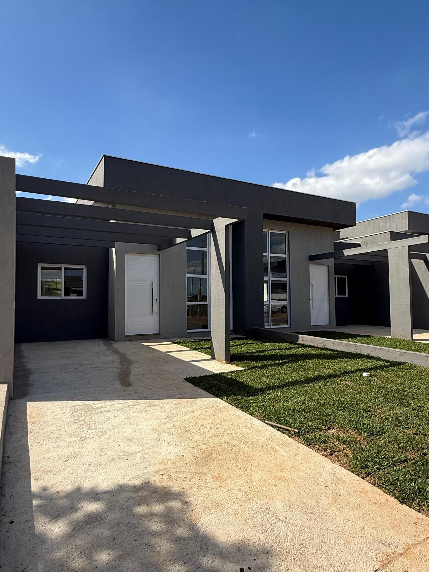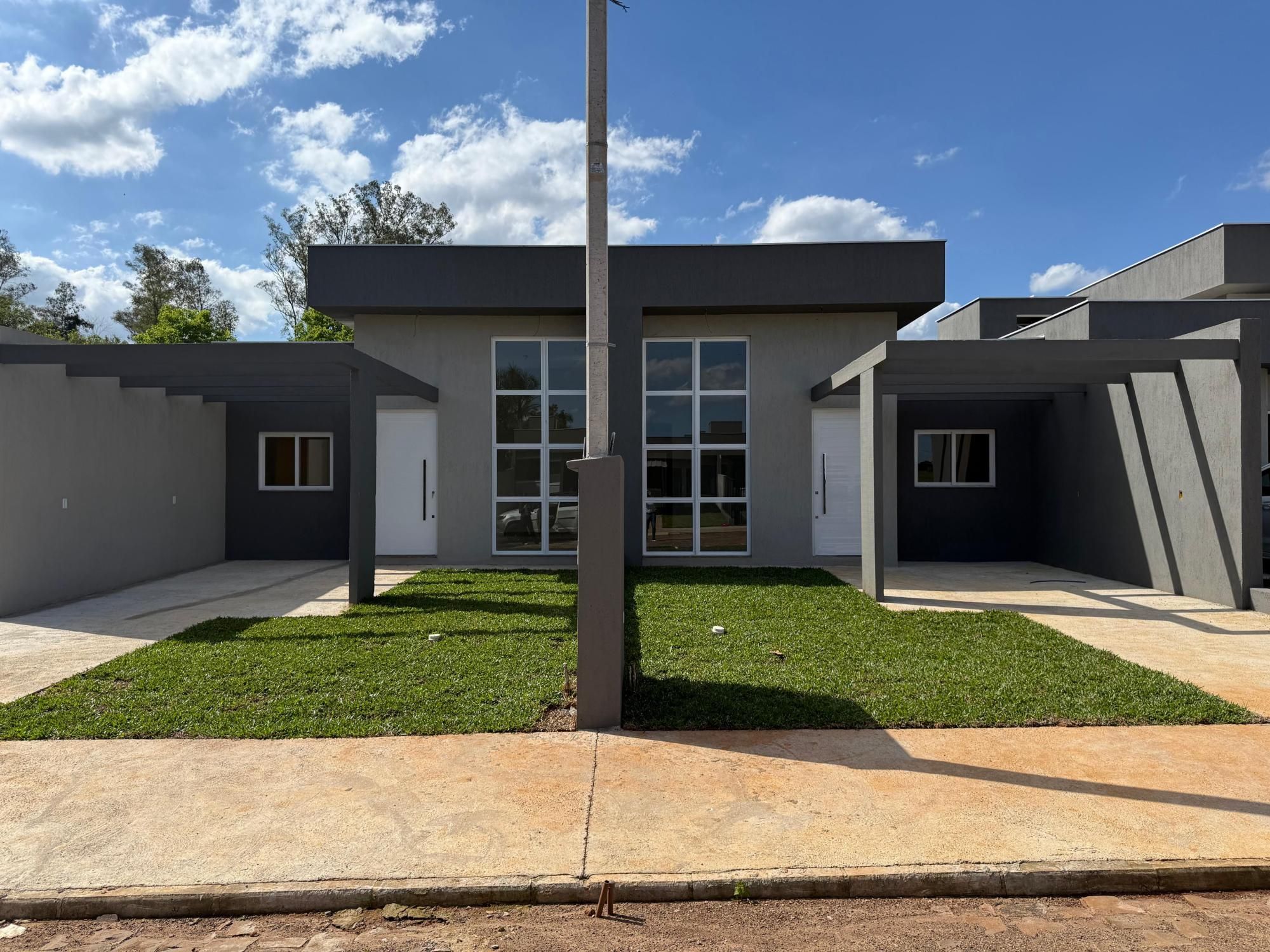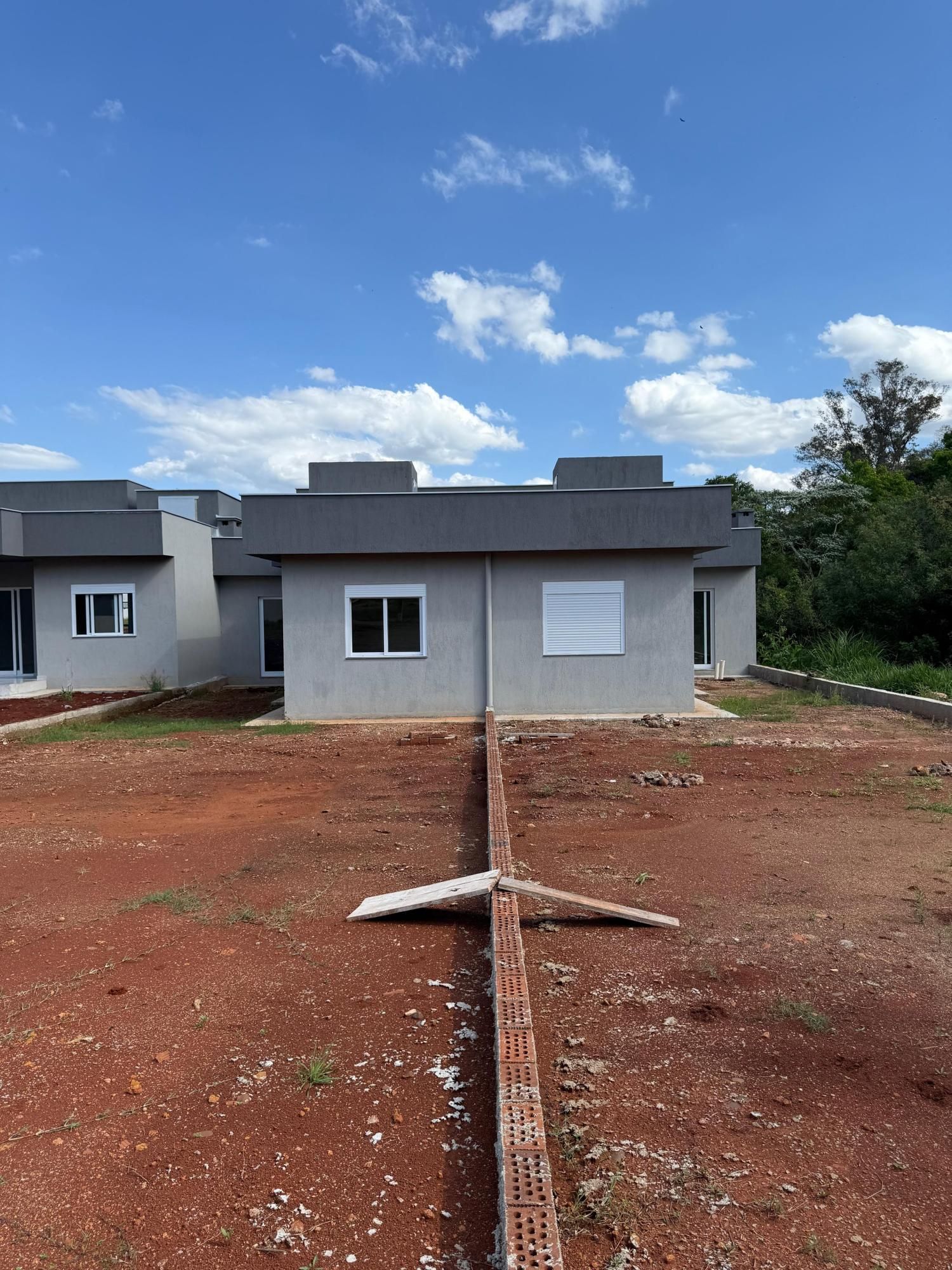 Casa geminada, 02 Dormitórios, sendo uma suíte, pé direito alto, cozinha e área de serviço separadas, espaço gourmet, amplo pátio de fundos, cercada e murada. Entrega com porcelanato, esquadrias em alumínio.