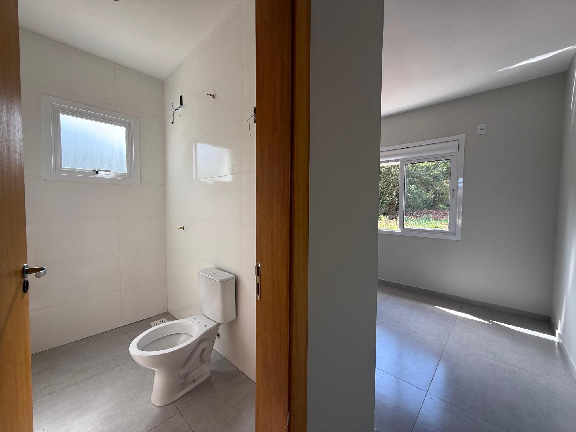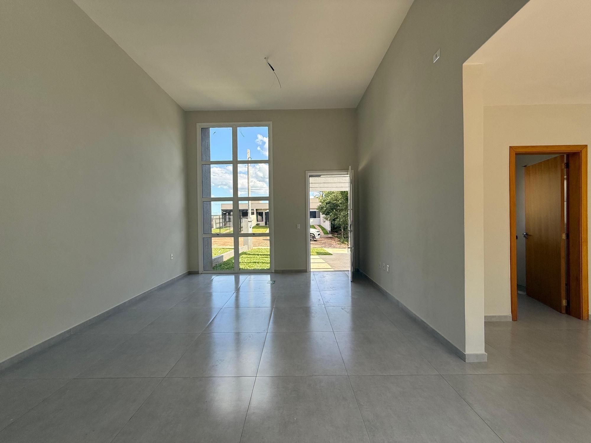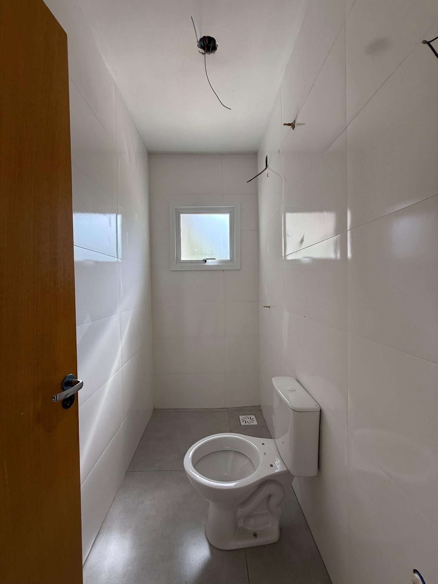 Casa geminada, 02 Dormitórios, sendo uma suíte, pé direito alto, cozinha e área de serviço separadas, espaço gourmet, amplo pátio de fundos, cercada e murada. Entrega com porcelanato, esquadrias em alumínio.