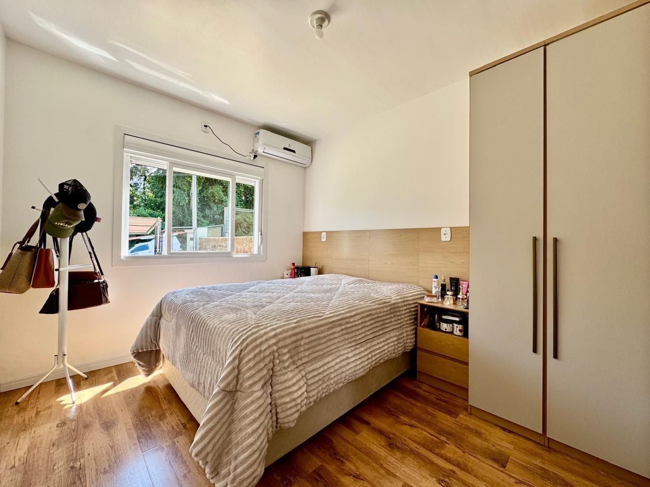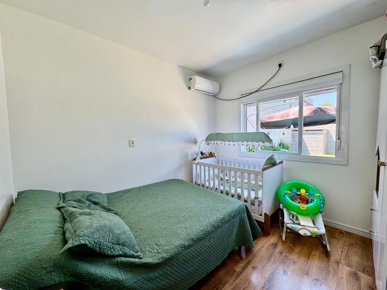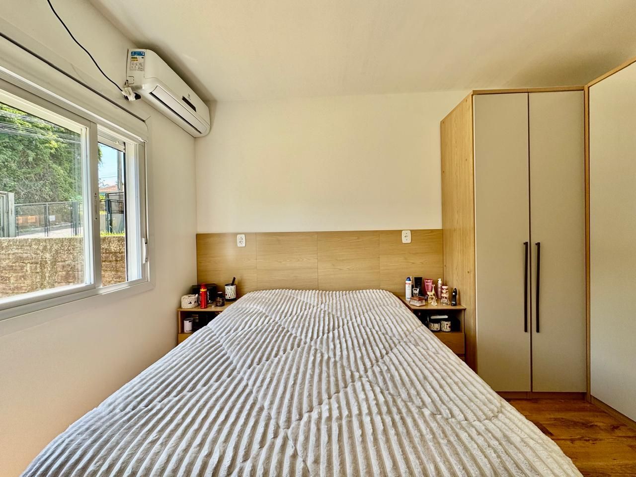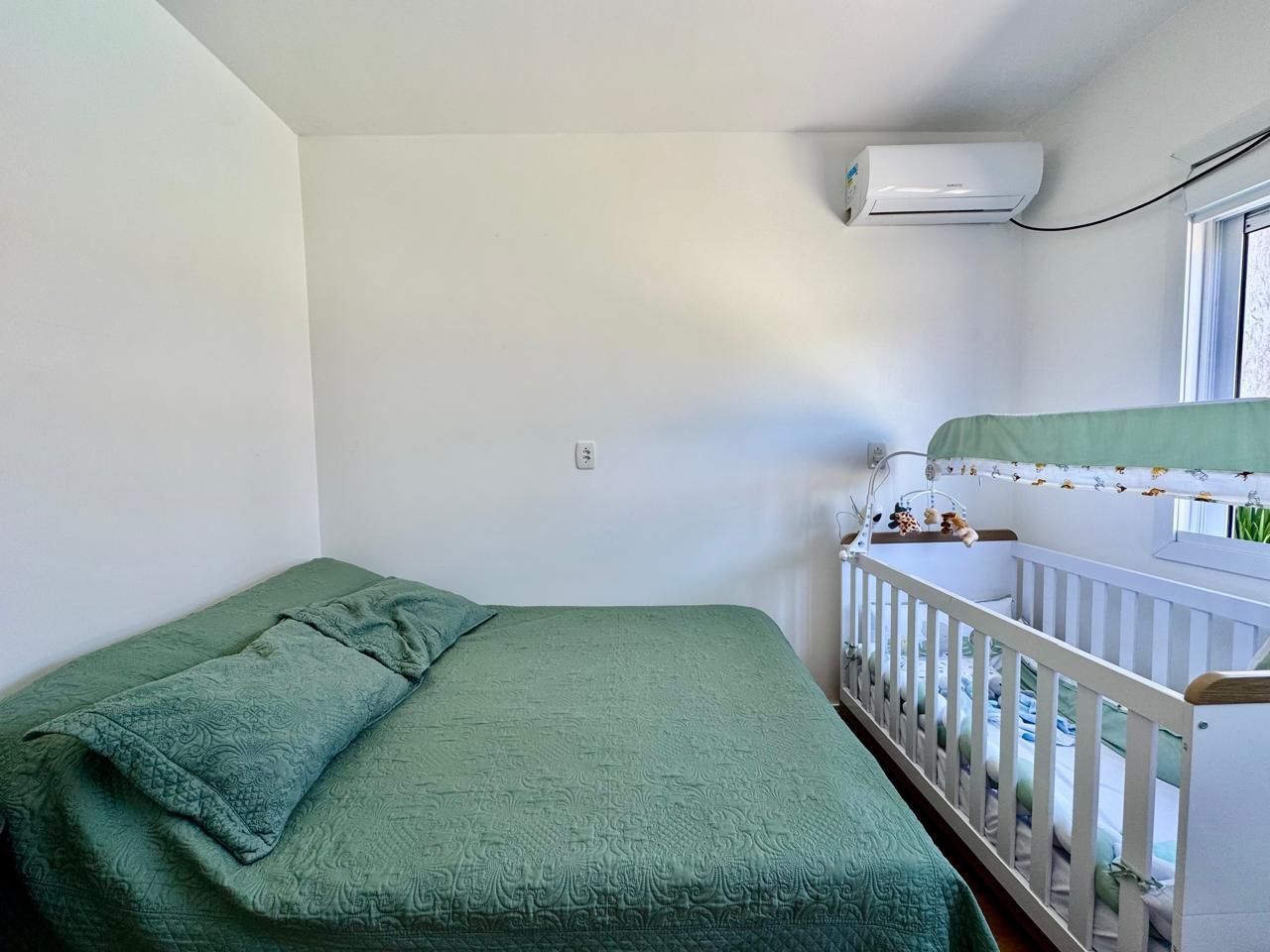Permanecem móveis fixos da cozinha, painel da sala, roupeiro do quarto de casal e banheiro.