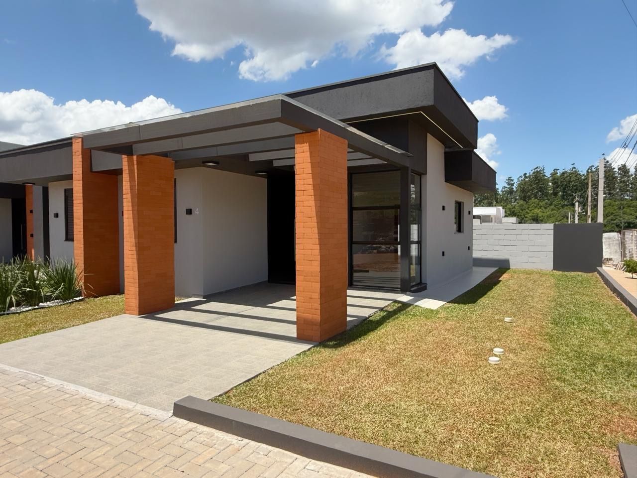 Esquadrias em alumínio, frente com gramado, divisas com mureta de 50cm, fundos com brita, concreto na rampa para o carro e pisantes até a entrada. Telhado com telha de aluzinco 0,50mm.