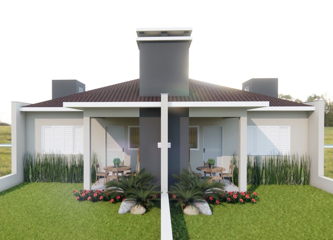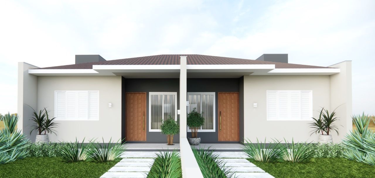 Casa geminada, composta por 02 dormitórios, sala de estar e jantar, cozinha, lavanderia, 01 banheiro social.