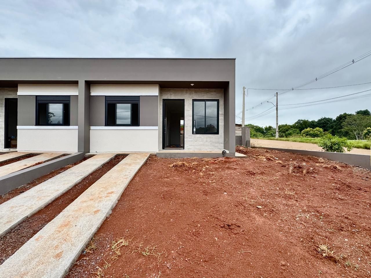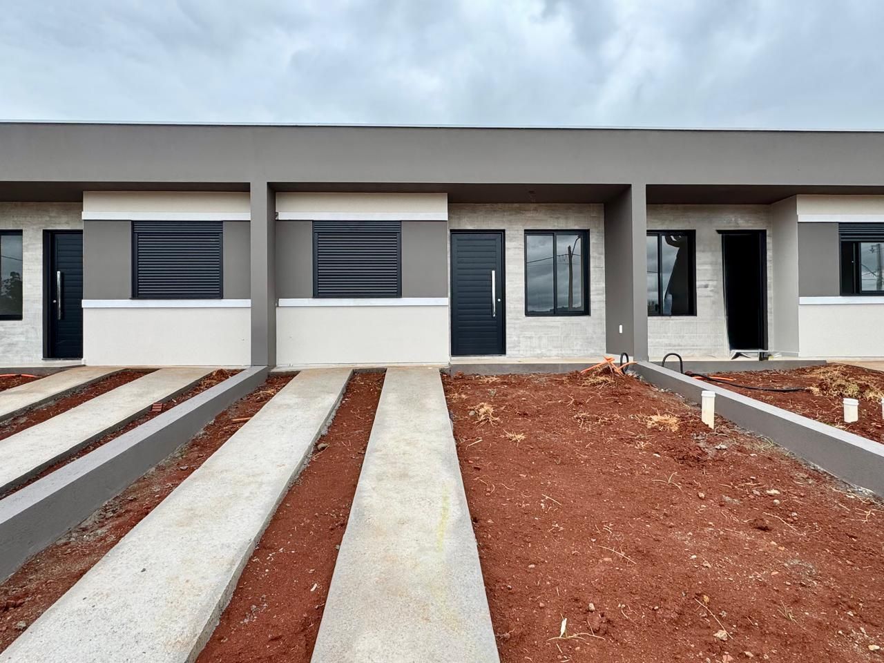 Casa geminada, NOVA, pronta para morar! 2 dormitórios Sala de estar e jantar integrados Churrasqueira Varanda nos fundos, murada Vaga para carro Casa de meio: R$235.000,00 Casa de esquina: R$265.000,00