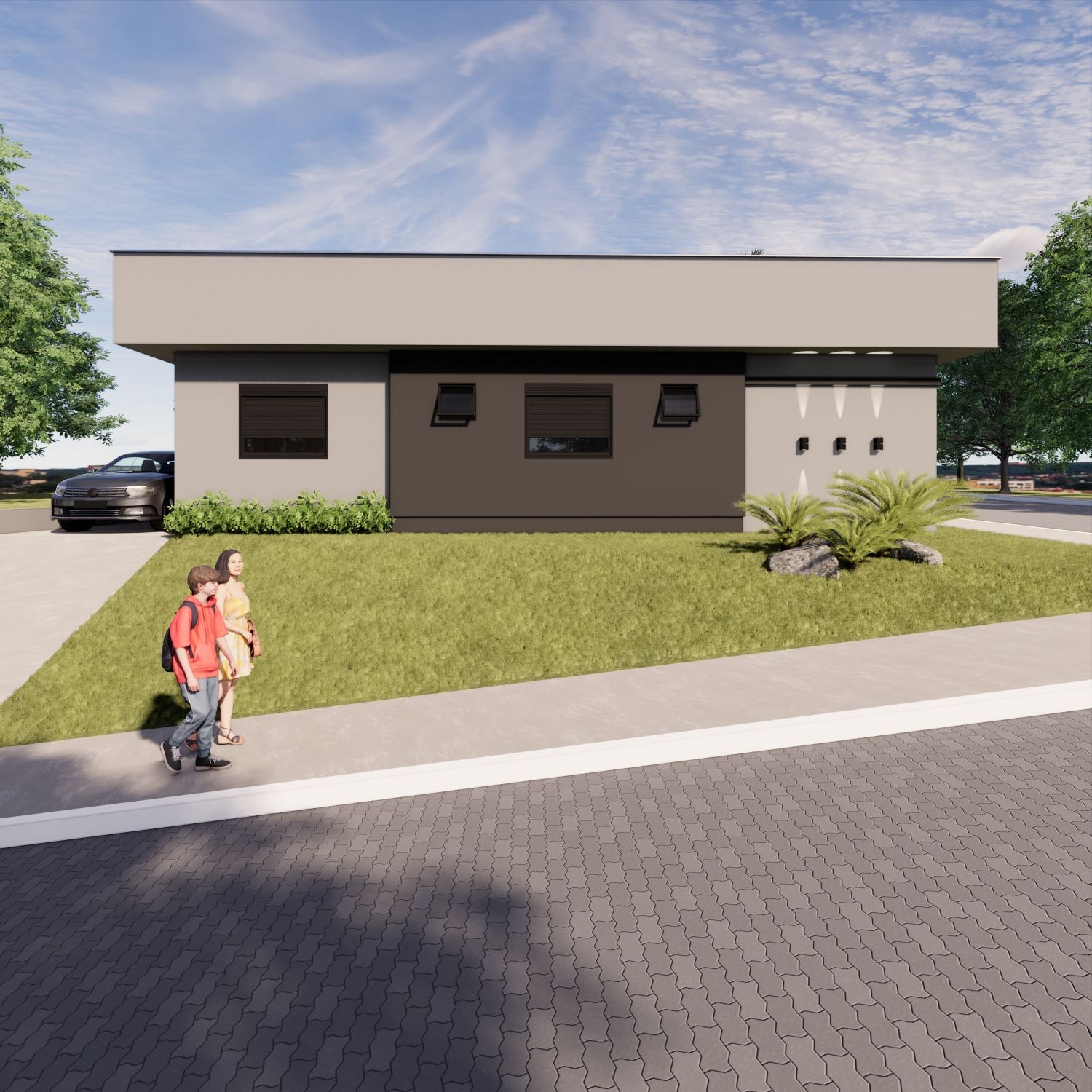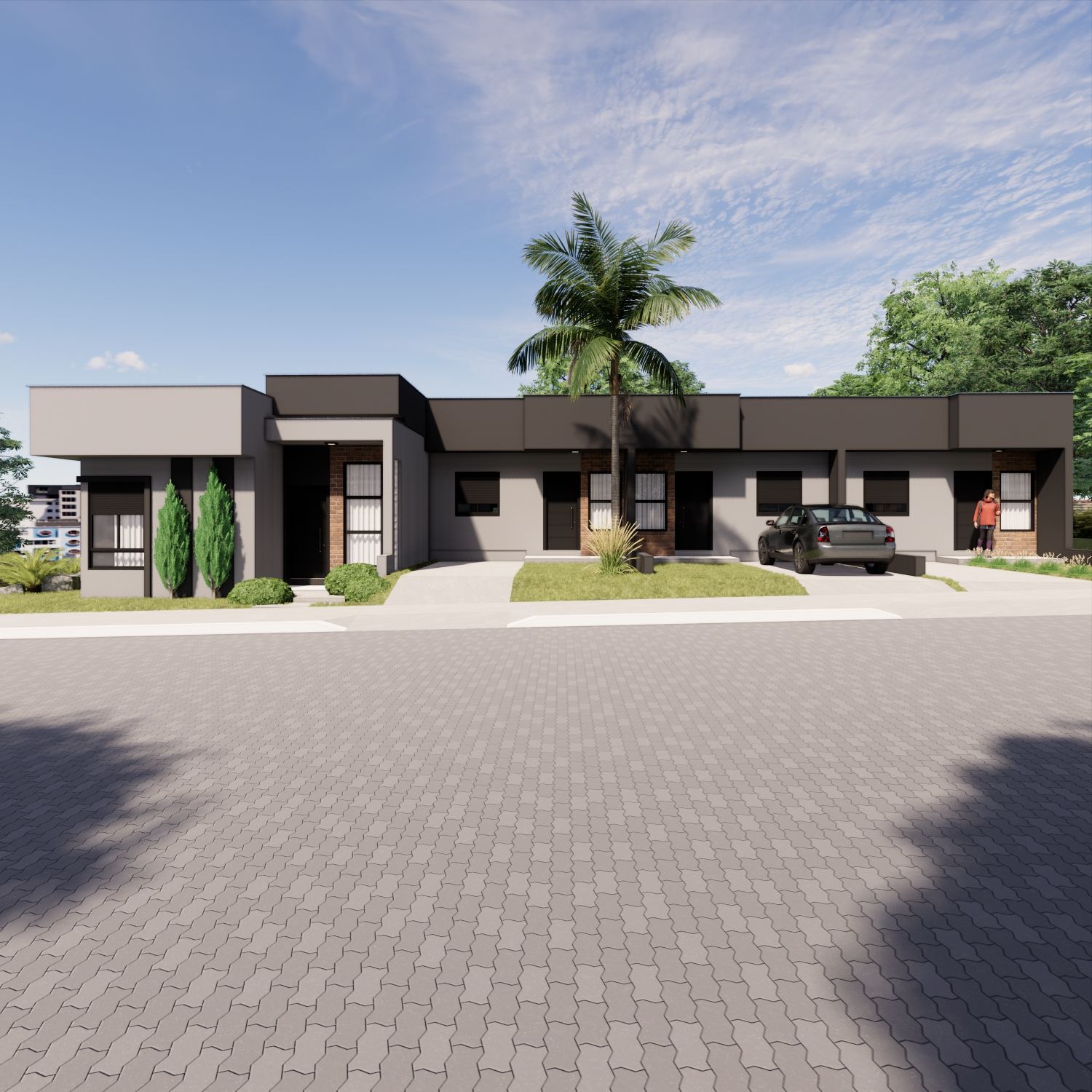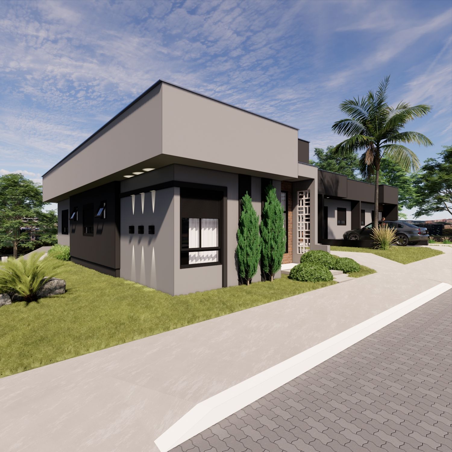 Casa geminada, em construção, no Bairro Conventos. Esquina com pátio. 3 dormitórios, sendo 1 suíte + banheiro social