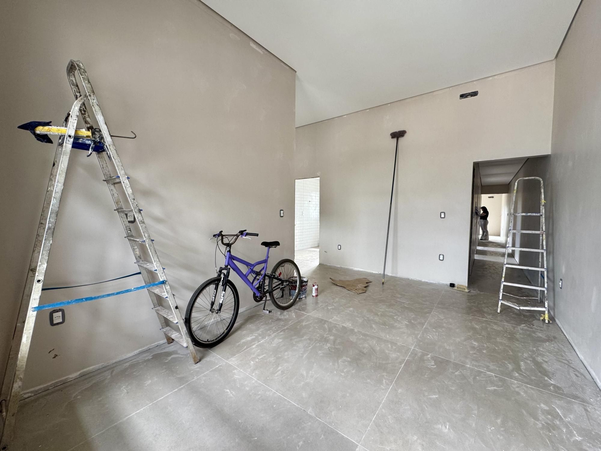 Sala de estar e jantar integradas, com pé direito alto, proporcionando amplitude e elegância