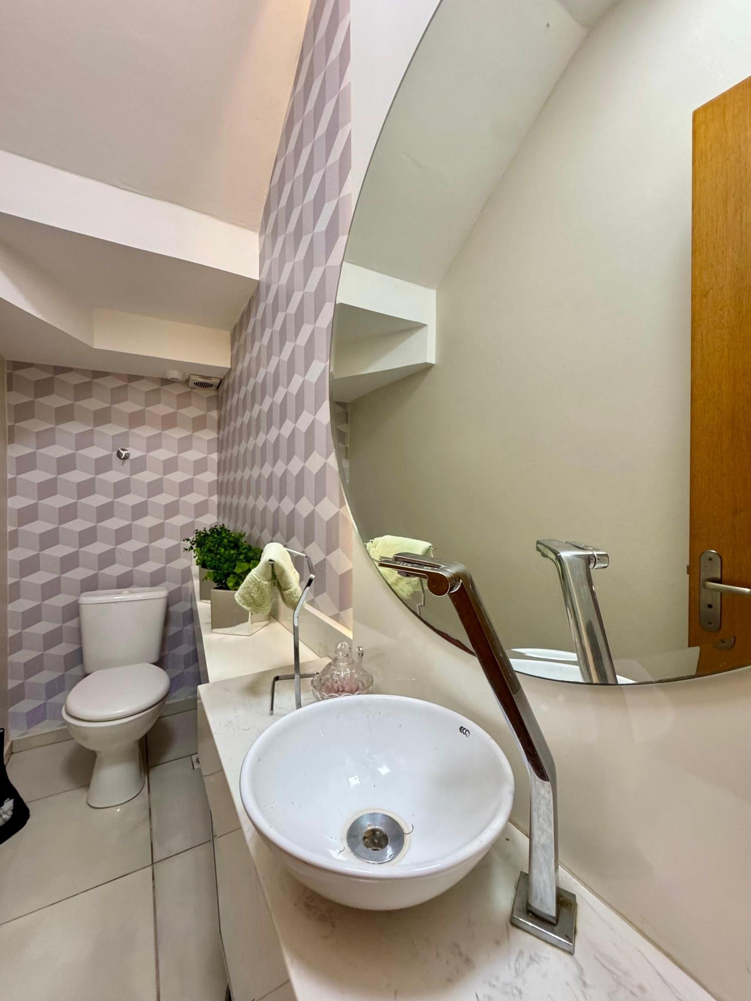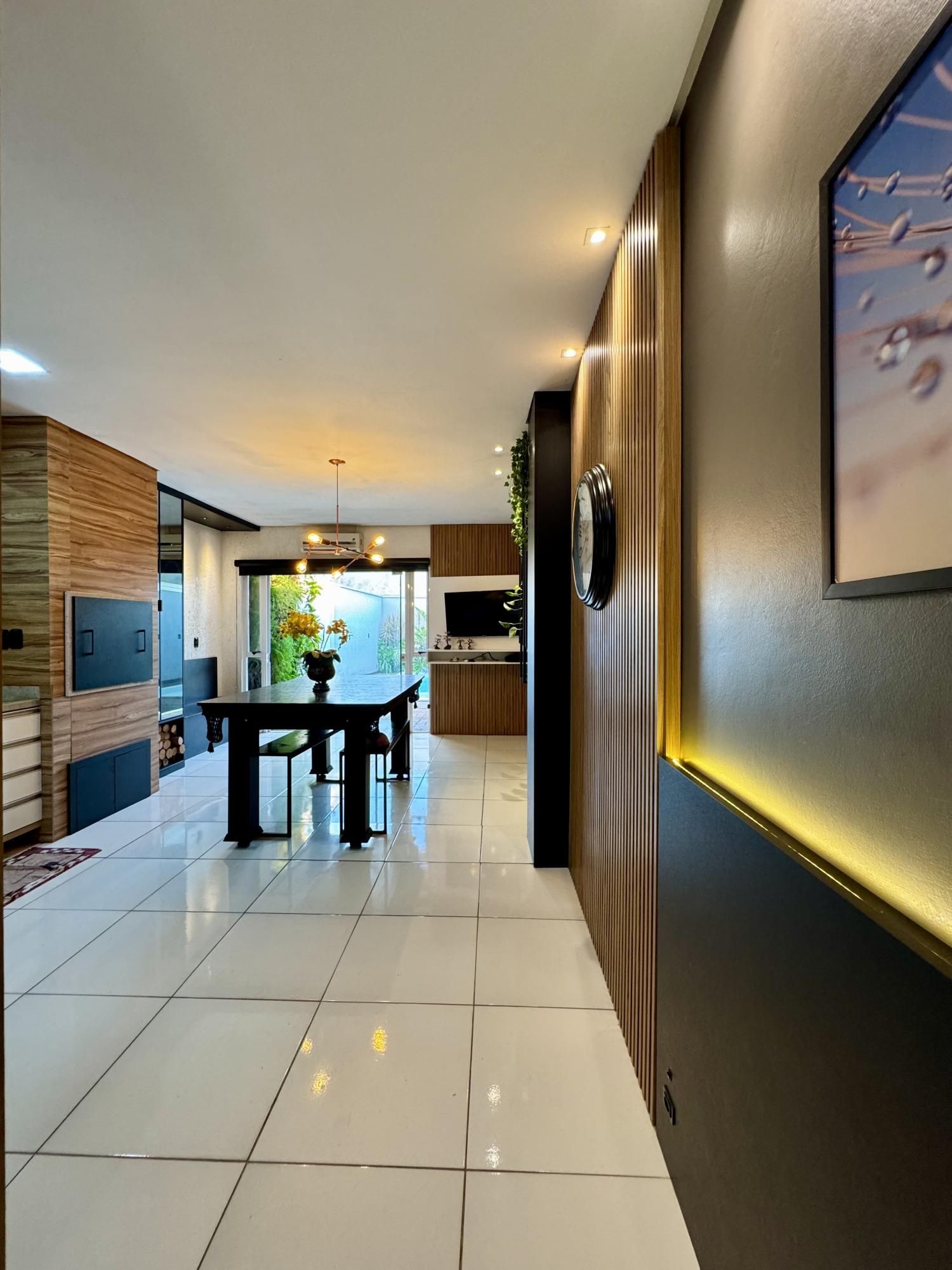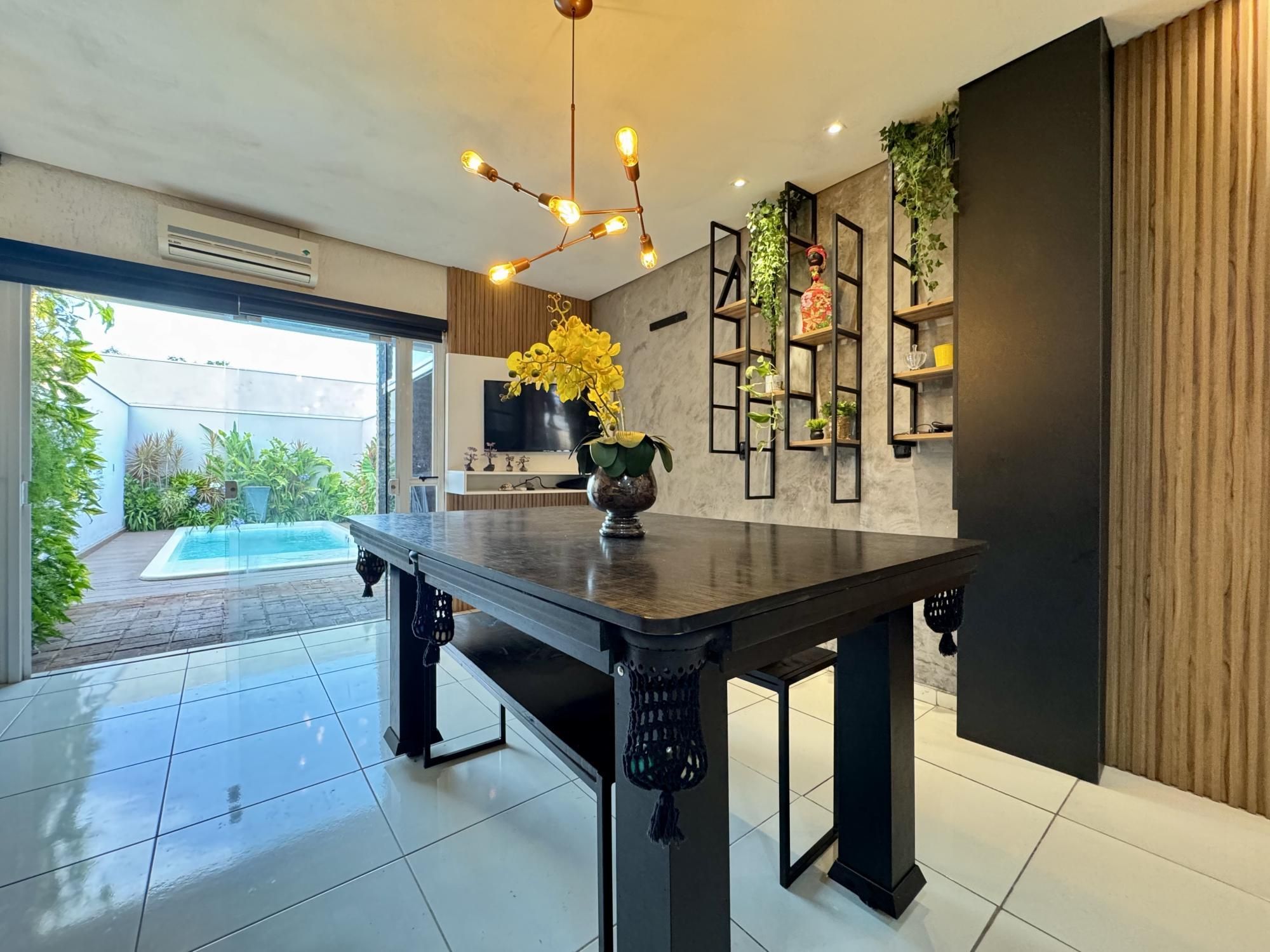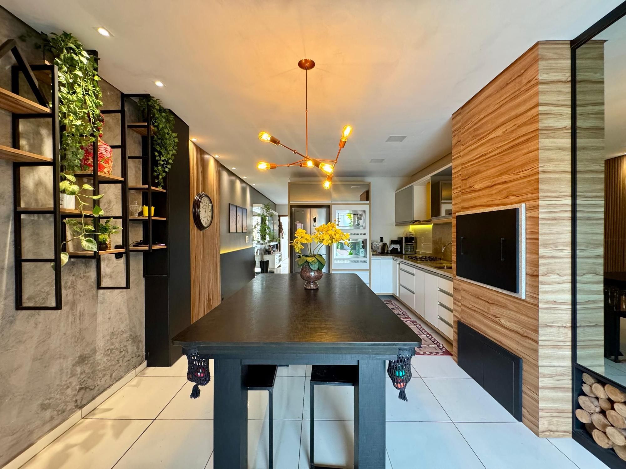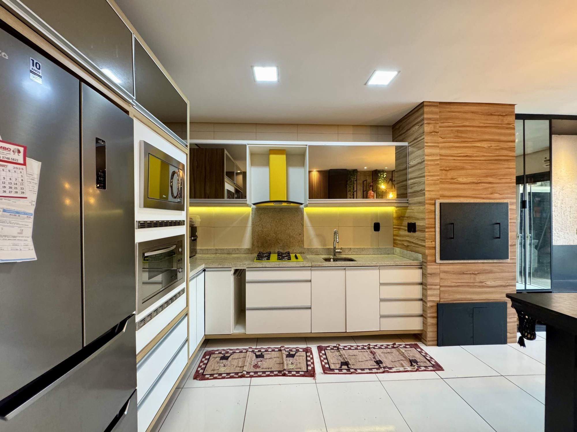 Sobrado contém uma ótima área gourmet, integrada com a cozinha, além de deck e piscina.
