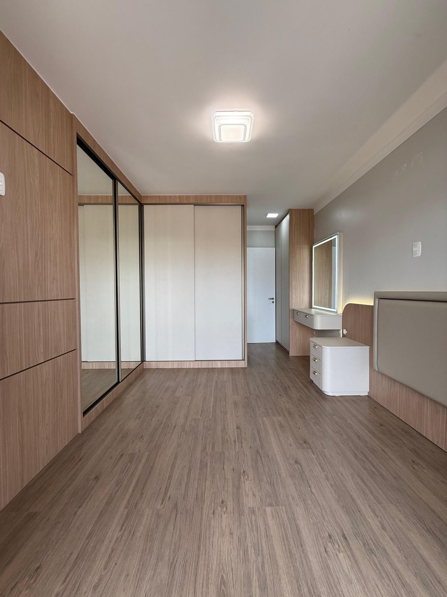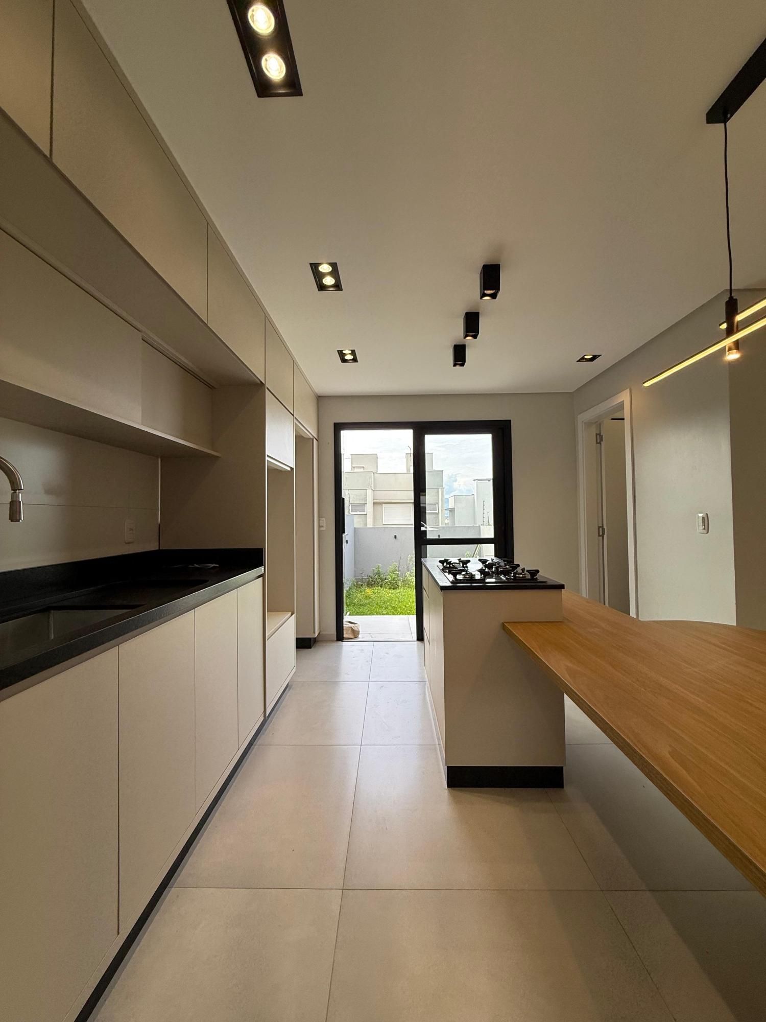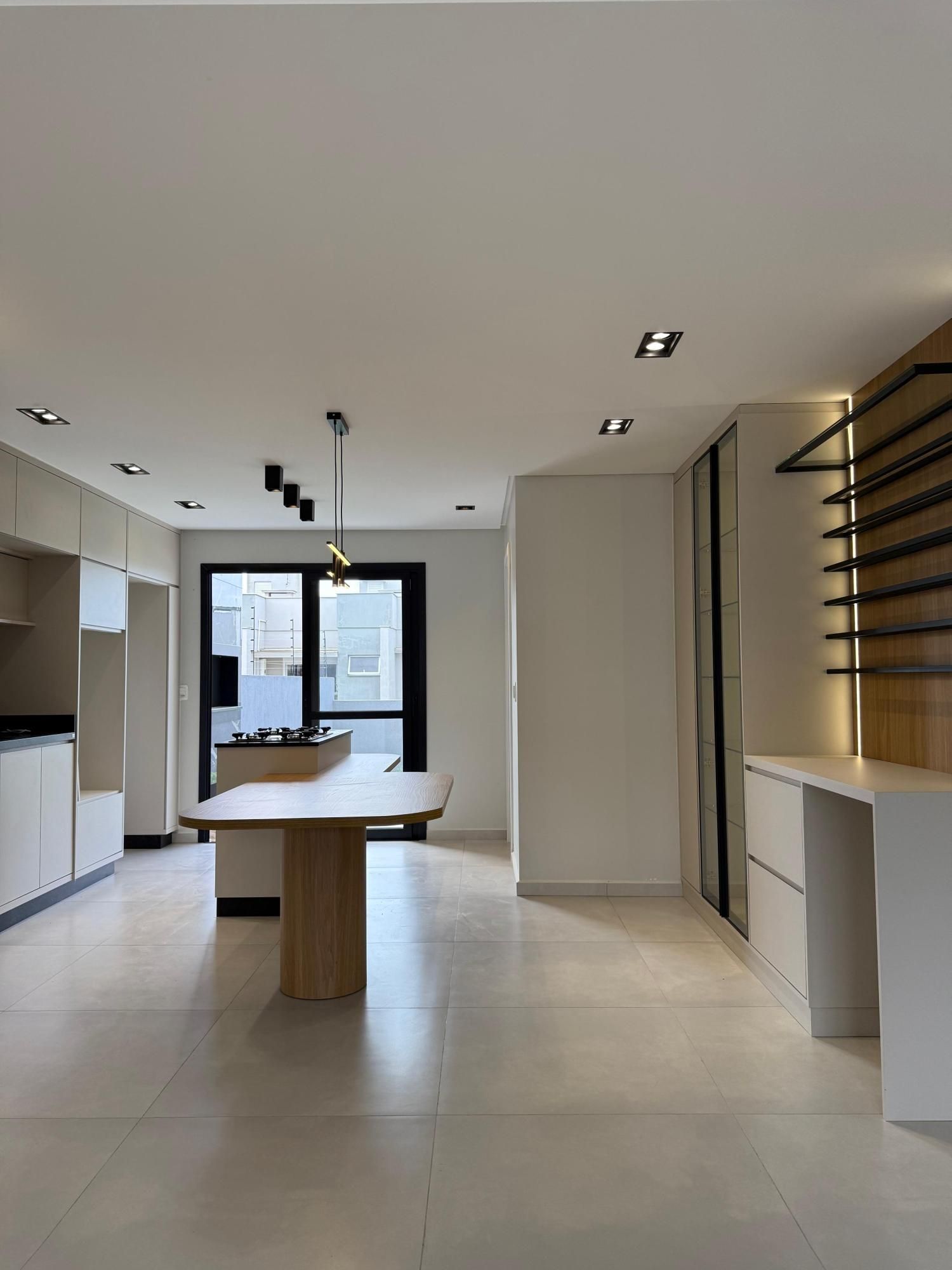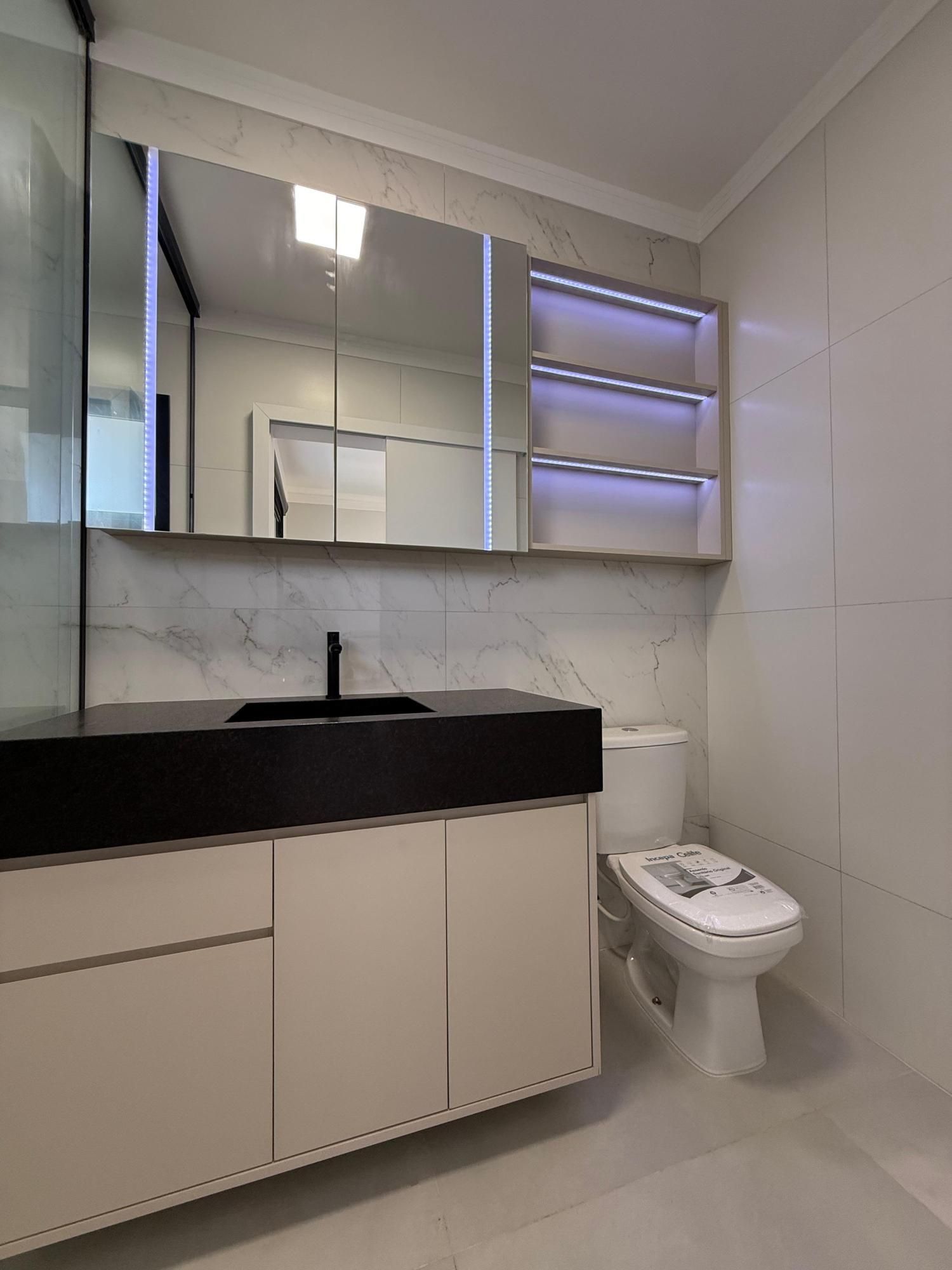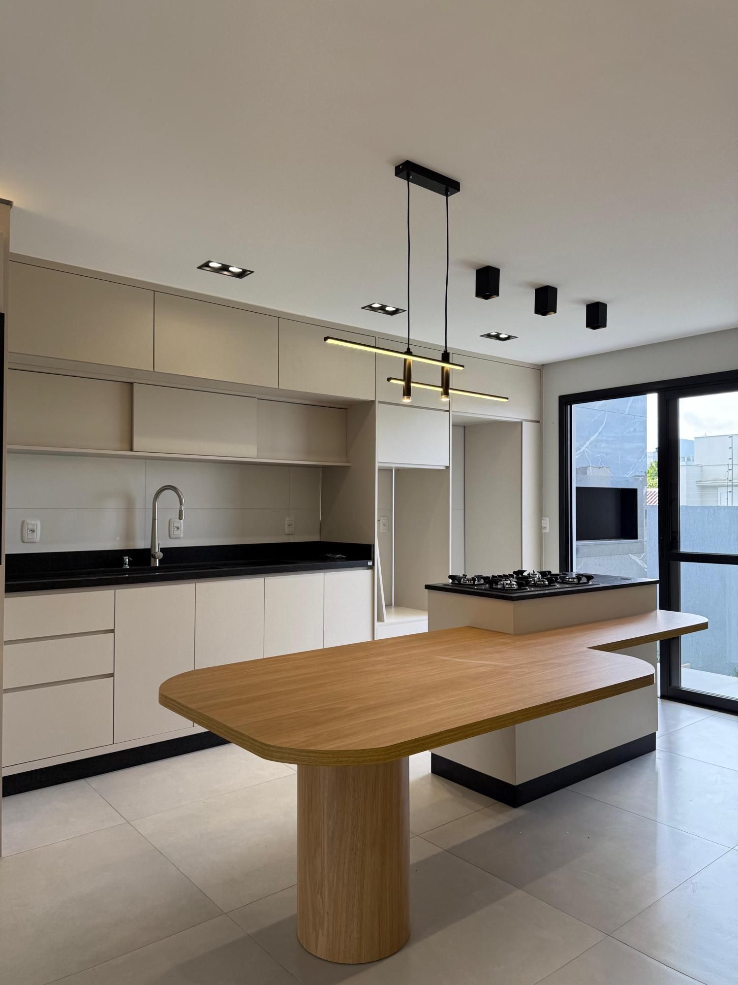 Sobrado amplo, 02 dormitórios, sendo 02 suítes, semimobiliado, cozinha sob medida, painel na sala, lavabo, iluminação completa, dormitório com closet, escritório, 02 vagas para carro. Laminado nos dormitórios, porcelanato nos demais cômodos.