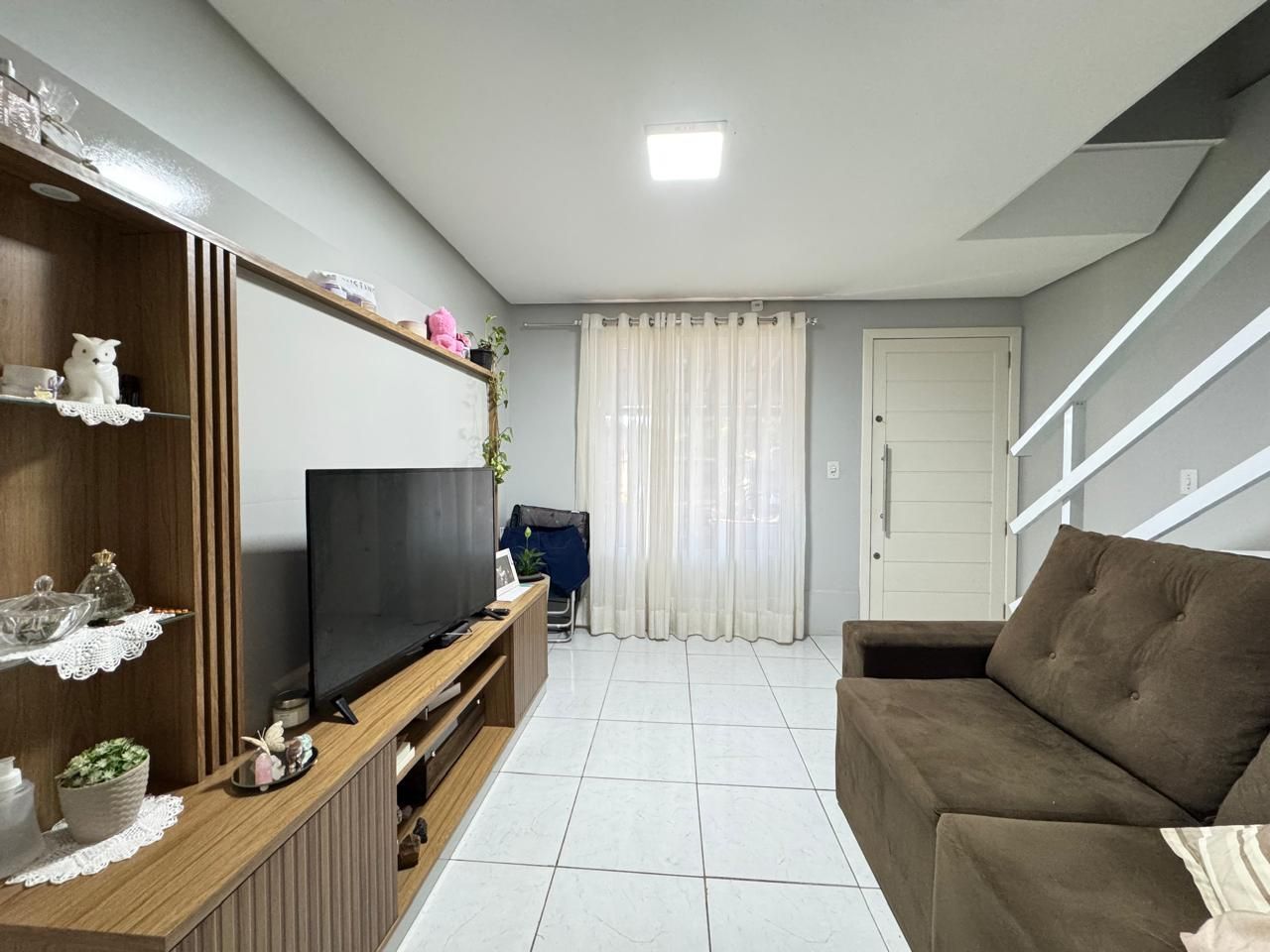 Sobrado semimobiliado, localizado no Bairro Floresta. 2 dormitórios Banheiro social + lavabo Pátio nos fundos com fundos para área verde Pergolado Vaga para 2 carros Permanece painel da sala, móveis da cozinha, banheiros e roupeiro do quarto.