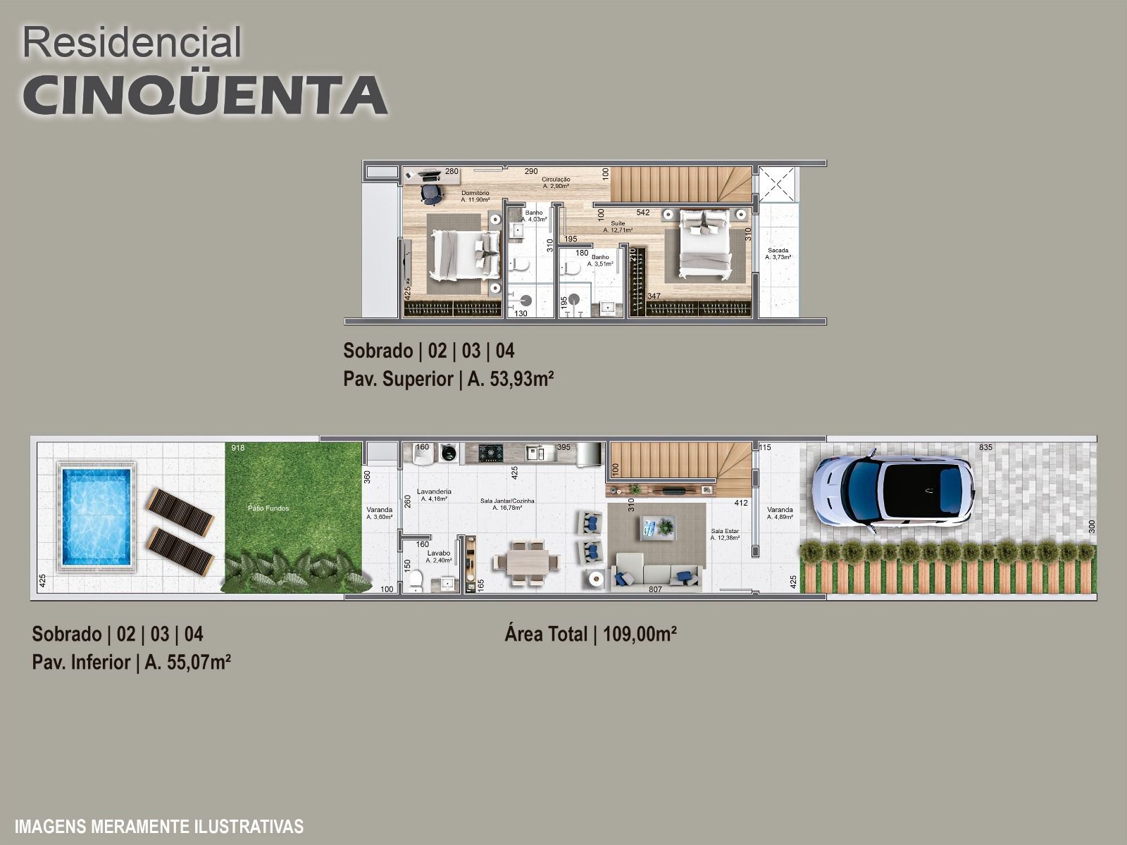 Banho social, lavabo, sala e cozinha integrada, lavanderia e churrasqueira,