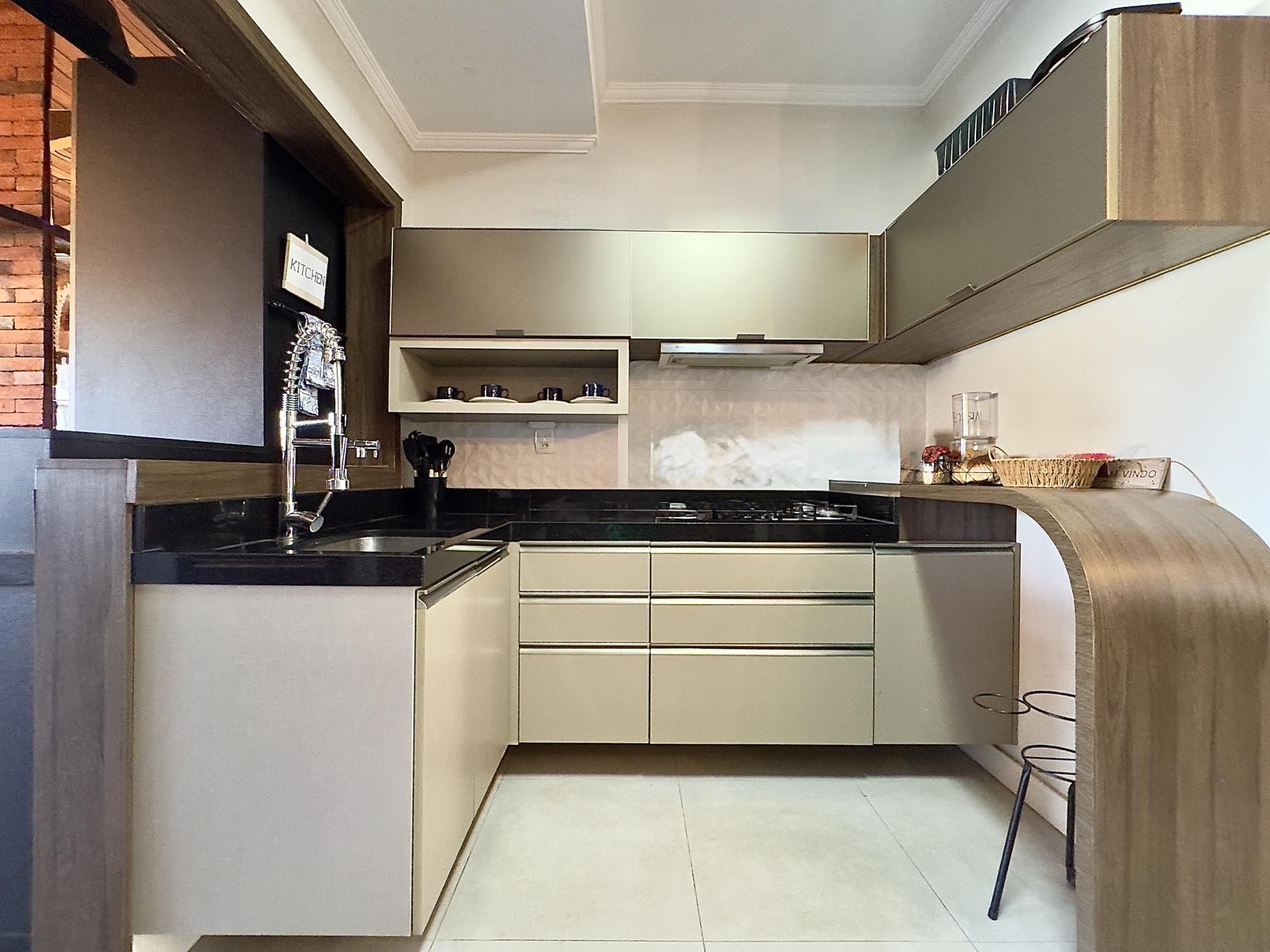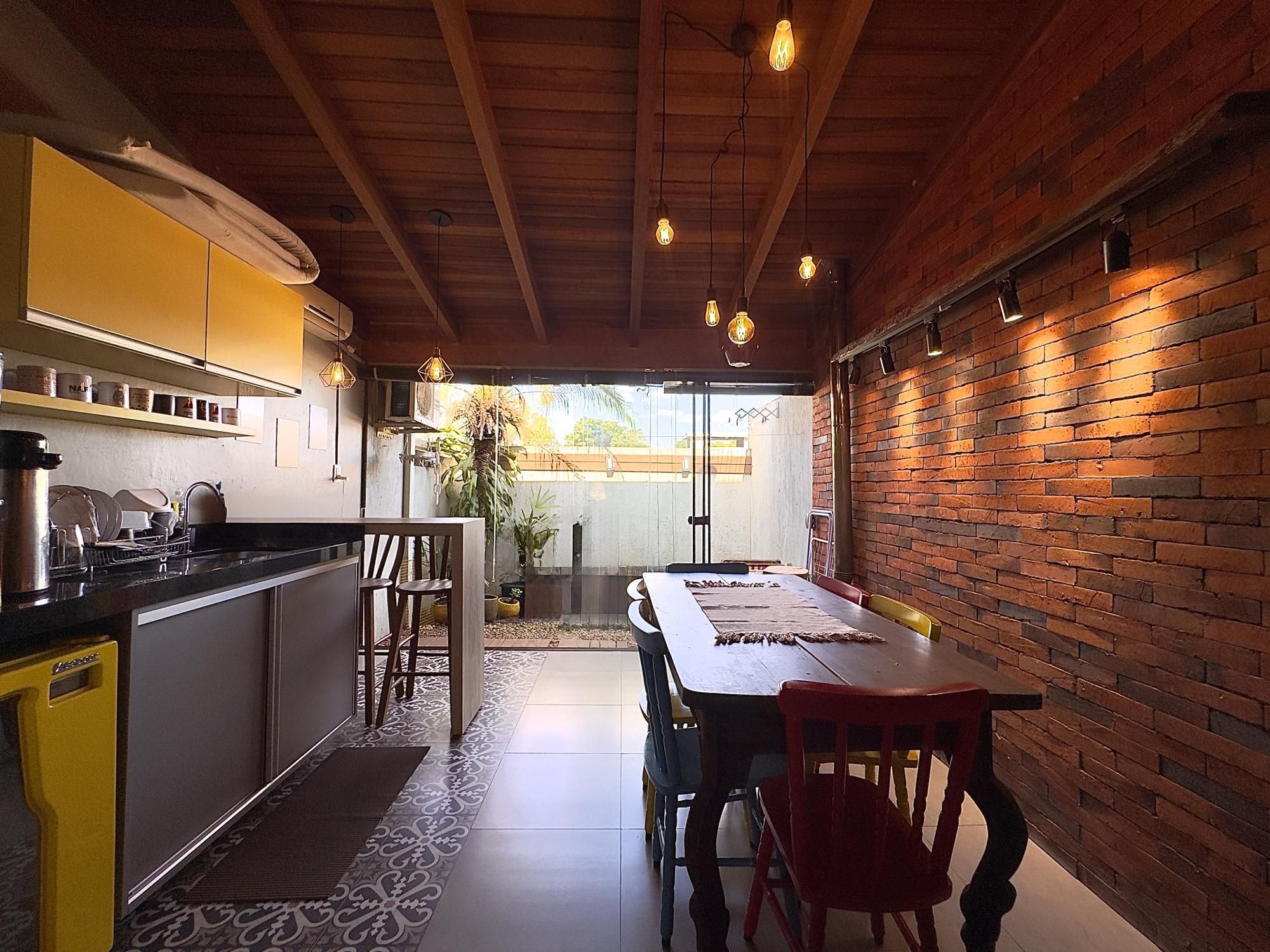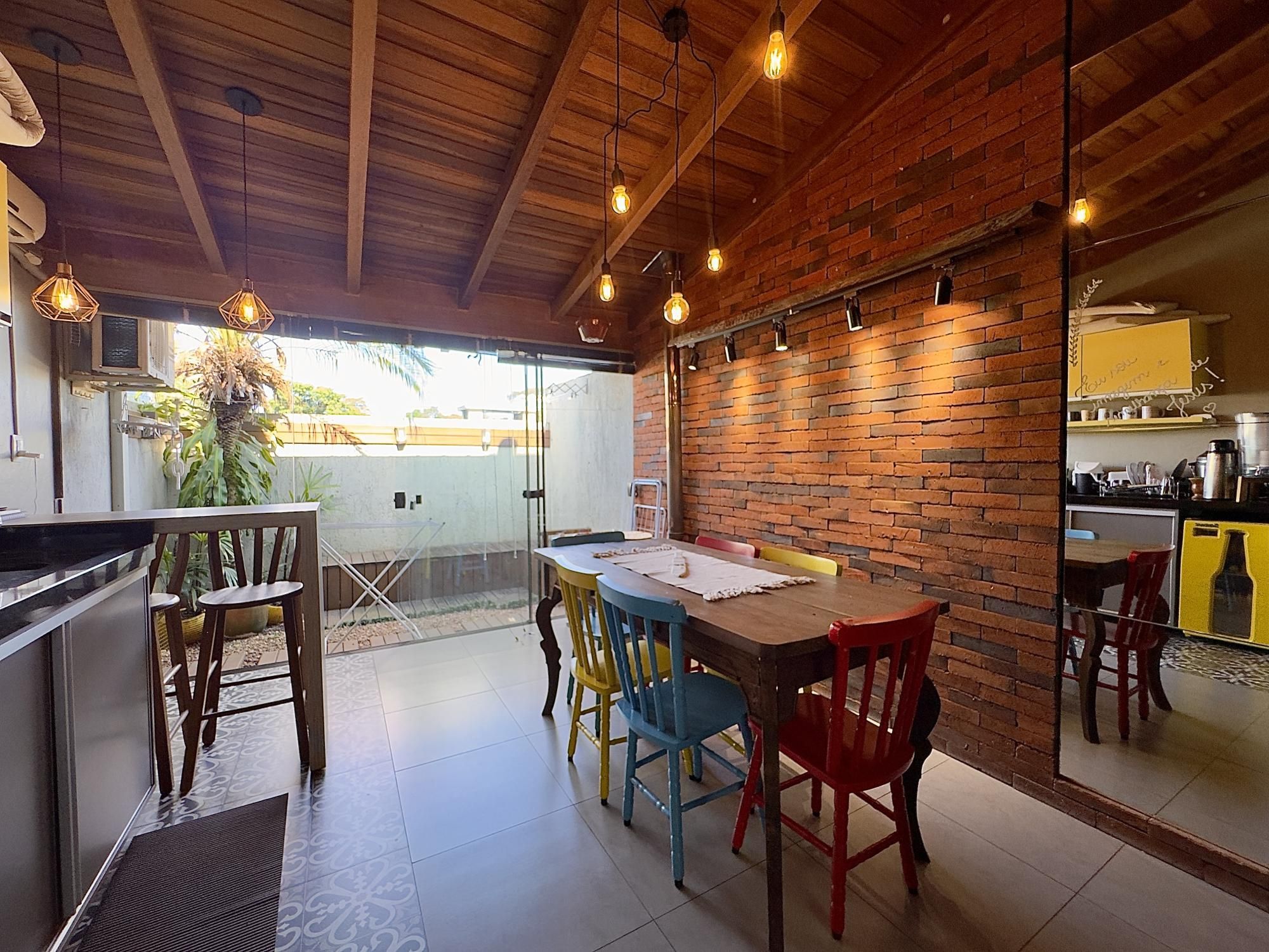 Sobrado mobiliado com 90m² privativos, composto por 02 dormitórios, banheiro social e lavabo, ambientes integrados de estar, jantar e cozinha com móveis planejados e um espaço gourmet. Churrasqueira, fogão a lenha, pergolado na frente com cobertura para os carros.