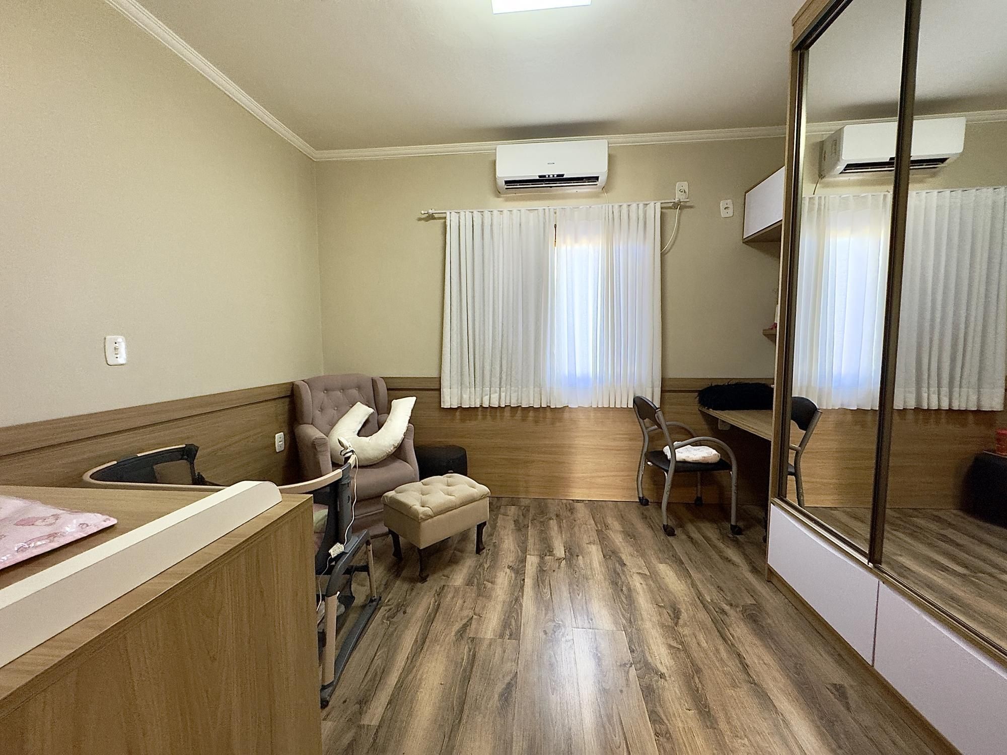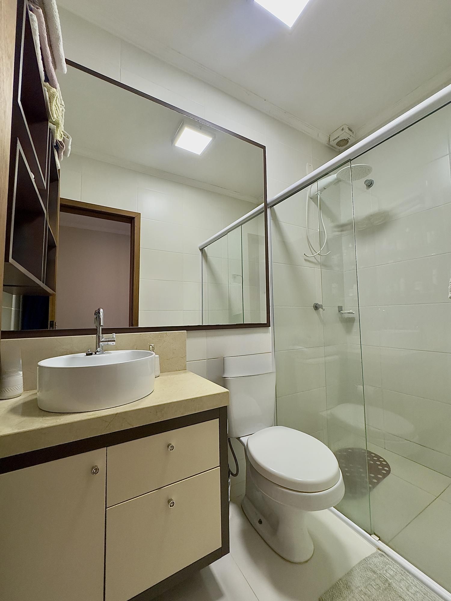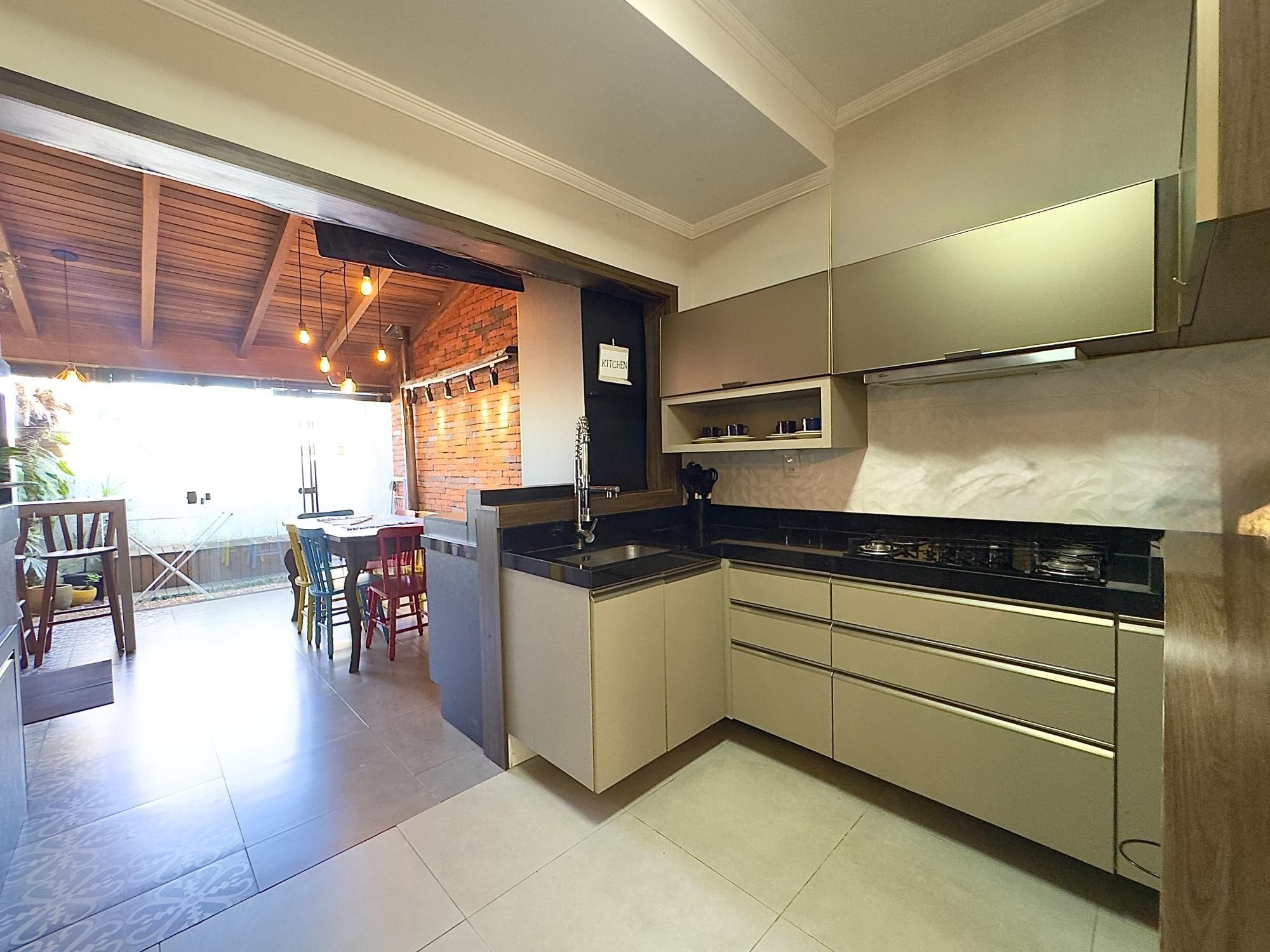 Sobrado mobiliado com 90m² privativos, composto por 02 dormitórios, banheiro social e lavabo, ambientes integrados de estar, jantar e cozinha com móveis planejados e um espaço gourmet. Churrasqueira, fogão a lenha, pergolado na frente com cobertura para os carros.
